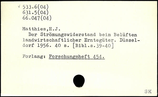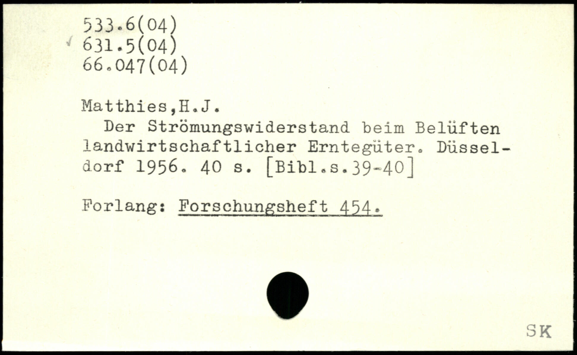 Der Strömungswiderstand beim Belüften landwirtschaftlicher Erntegüter. Düsseldorf 1956.
