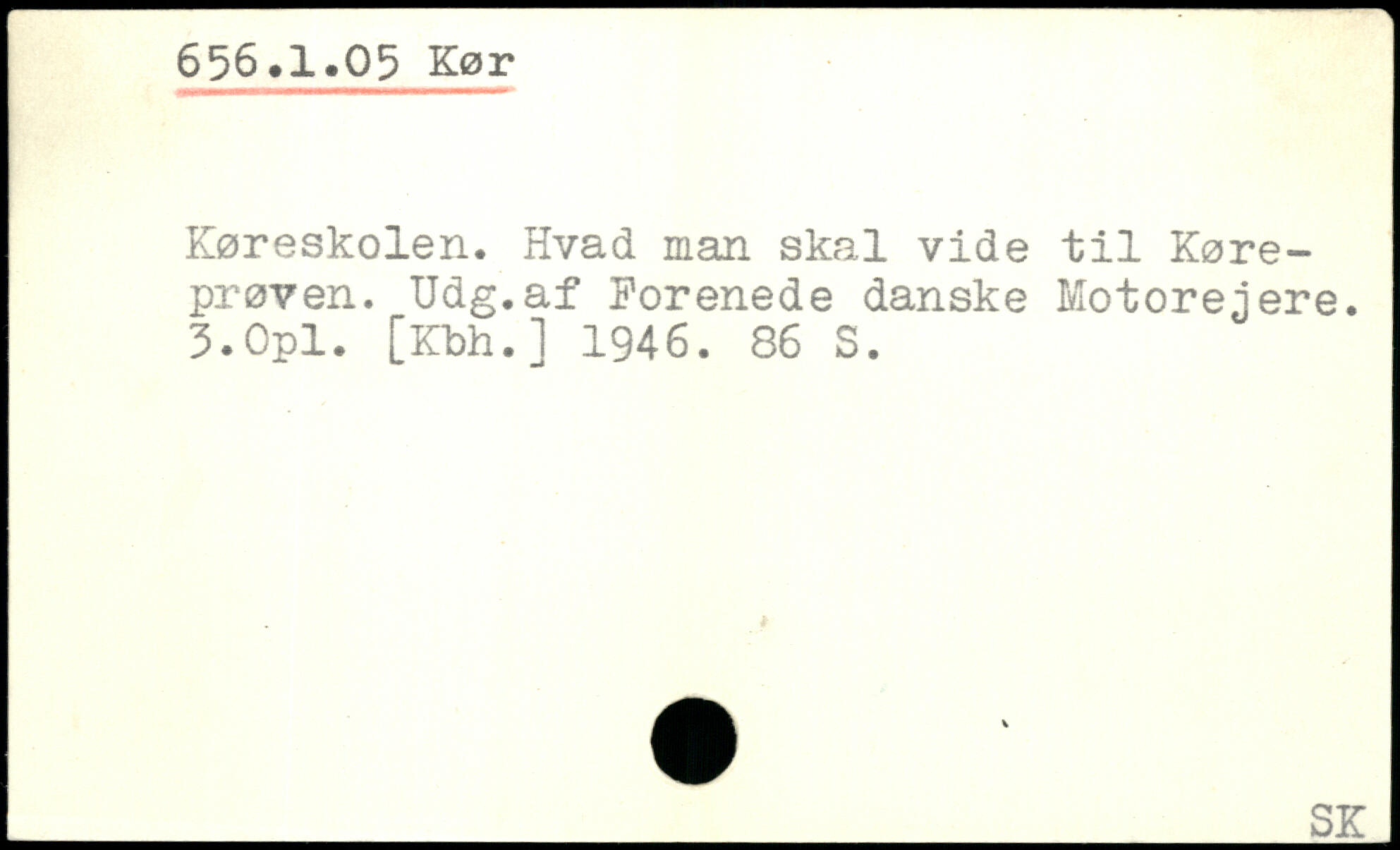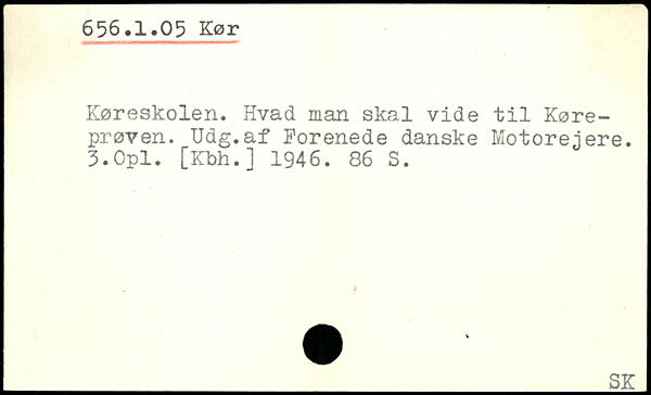 Køreskolen. Hvad man skal vide til Køreprøven. Udg.af Forenede danske Motorejere. 3.Opl. [Kbh.] 1946.
