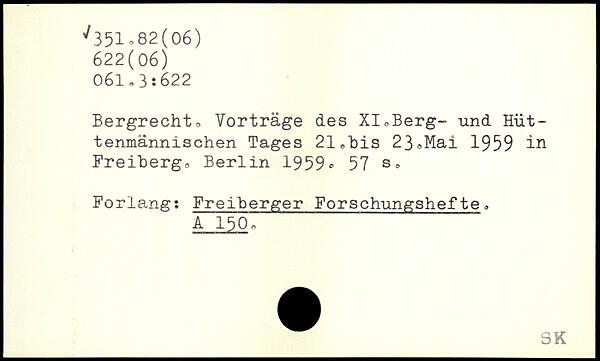 Bergrechto Vorträge des XI.Berg- und Hüttenmännischen Tages 21.bis 23.Mai 1959 in Freiberg.