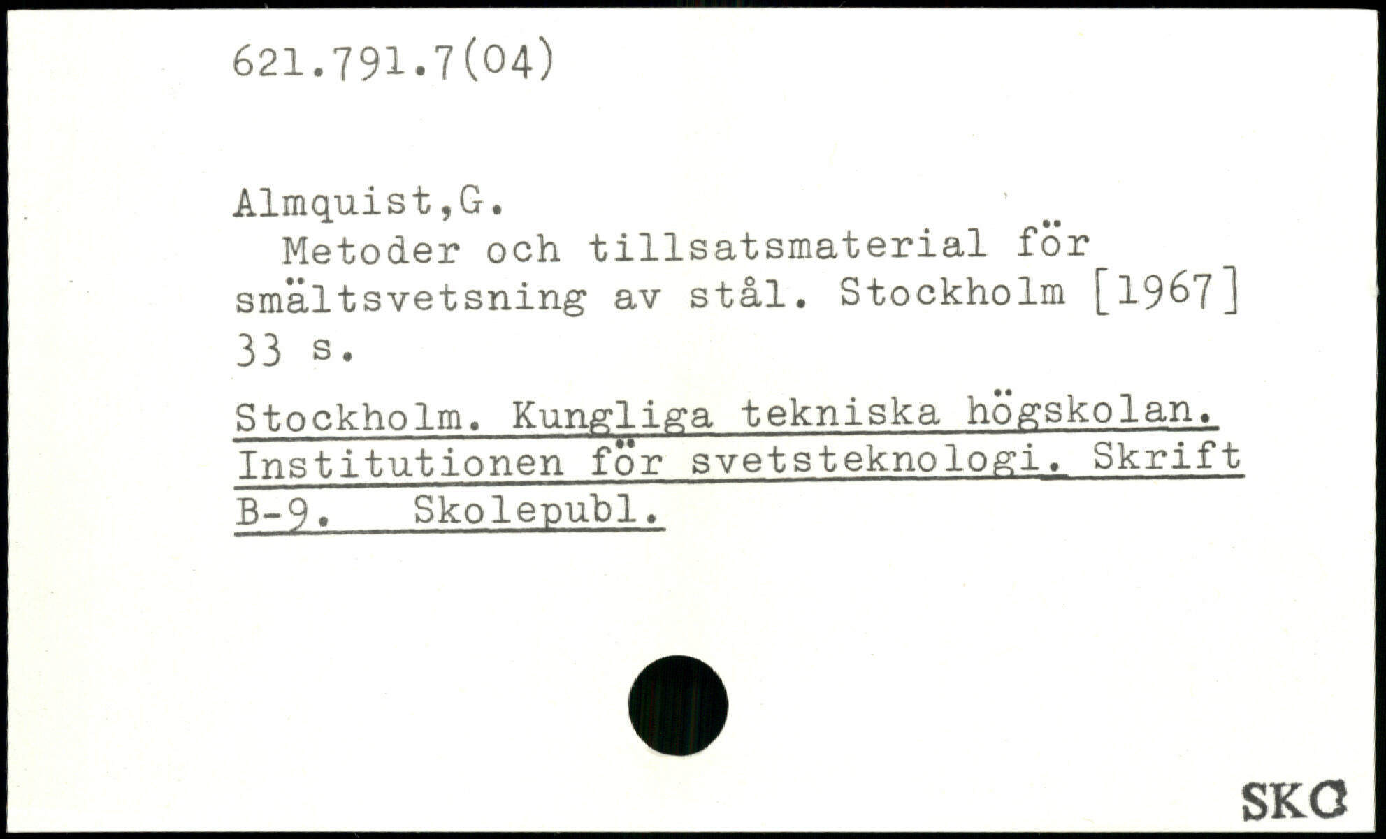 Metoder och tillsatsmaterial för smältsvetsning av stål. Stockholm