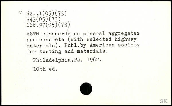 ASTM standards on mineral aggregates and concrete (with selected highway-materials). Publ,by American society for testing and materials. Philadelphia,Pa. 1962. 10th ed.