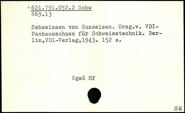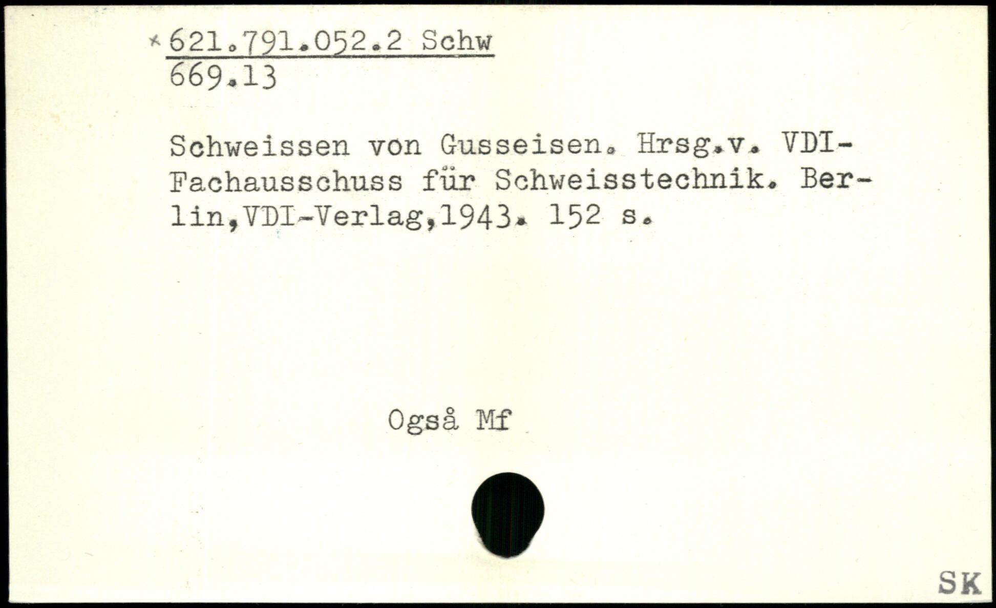 Schweissen von Gusseisen. Hrsg.v. VD1- ■ Fachausschuss für Schweisstechnik.
