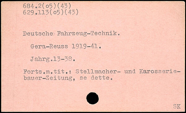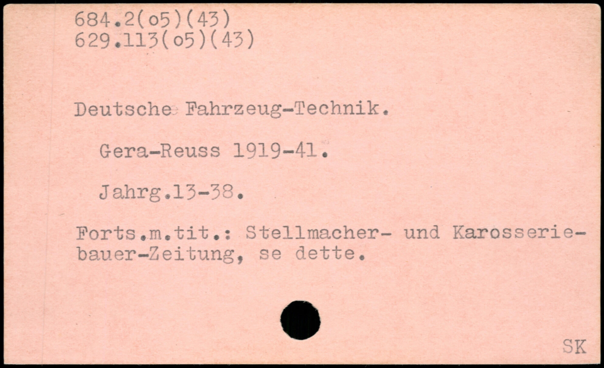 Deutsche. Fahrzeug-Technik. G-era-Reuss 1919-41. Jahrg.13-33. Forts.m.tit.: Stellmacher- und Karosseriebauer-Zeitung, se dette.