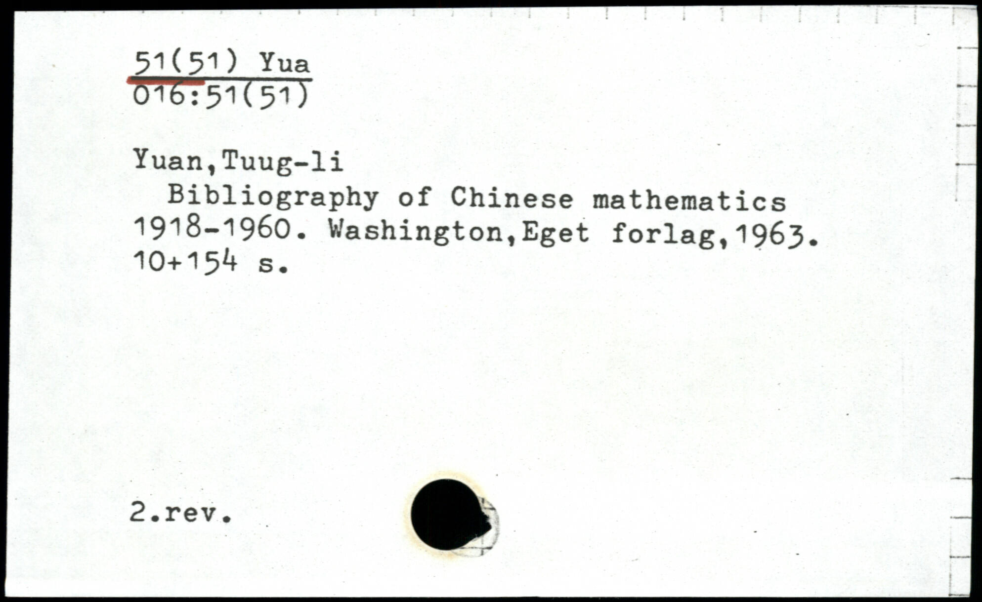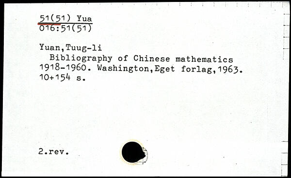 Yuan,Tuug-li — Bibliography of Chinese mathematics 1918-1960.