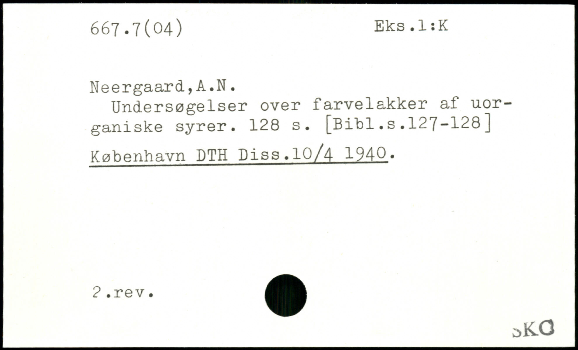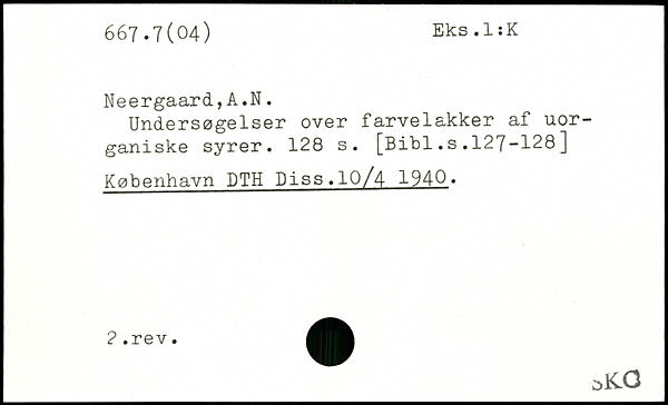 Undersøgelser over farvelakker af uorganiske syrer.