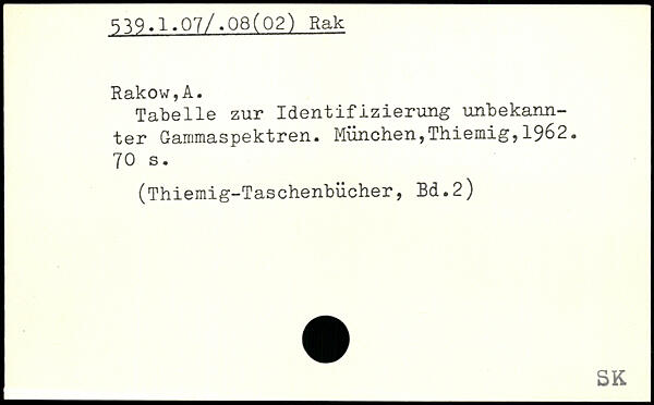 Tabelle zur Identifizierung unbekannter Gammaspektren.