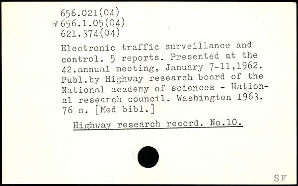 Electronic traffic surveillance and control. 5 reports. Presented at the 42.annual meeting, January 7-H,1962.
