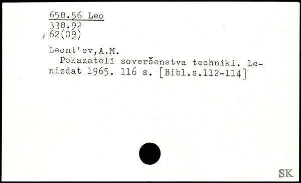 Leont ' ev, A.M. Pokazateli soversenstva techniki. Le-nizdat 1965. II