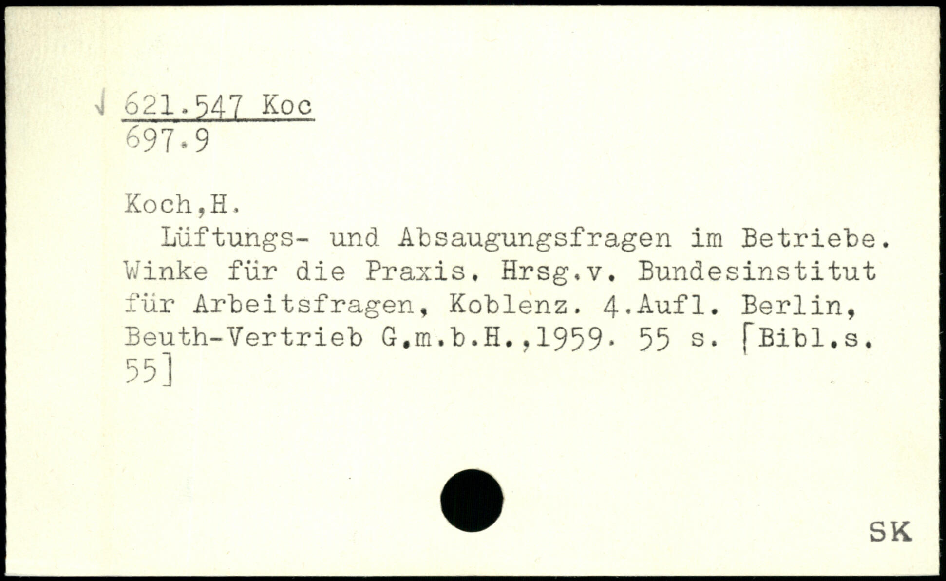 Lüftungs- und Absaugungsfragen im Betriebe. Winke für die Praxis, Hrsg.v. Bundesinstitut für Arbeitsfragen, Koblenz. 4-Aufl. Berlin, Beuth-Vertrieb G.m.b.H.,1959.