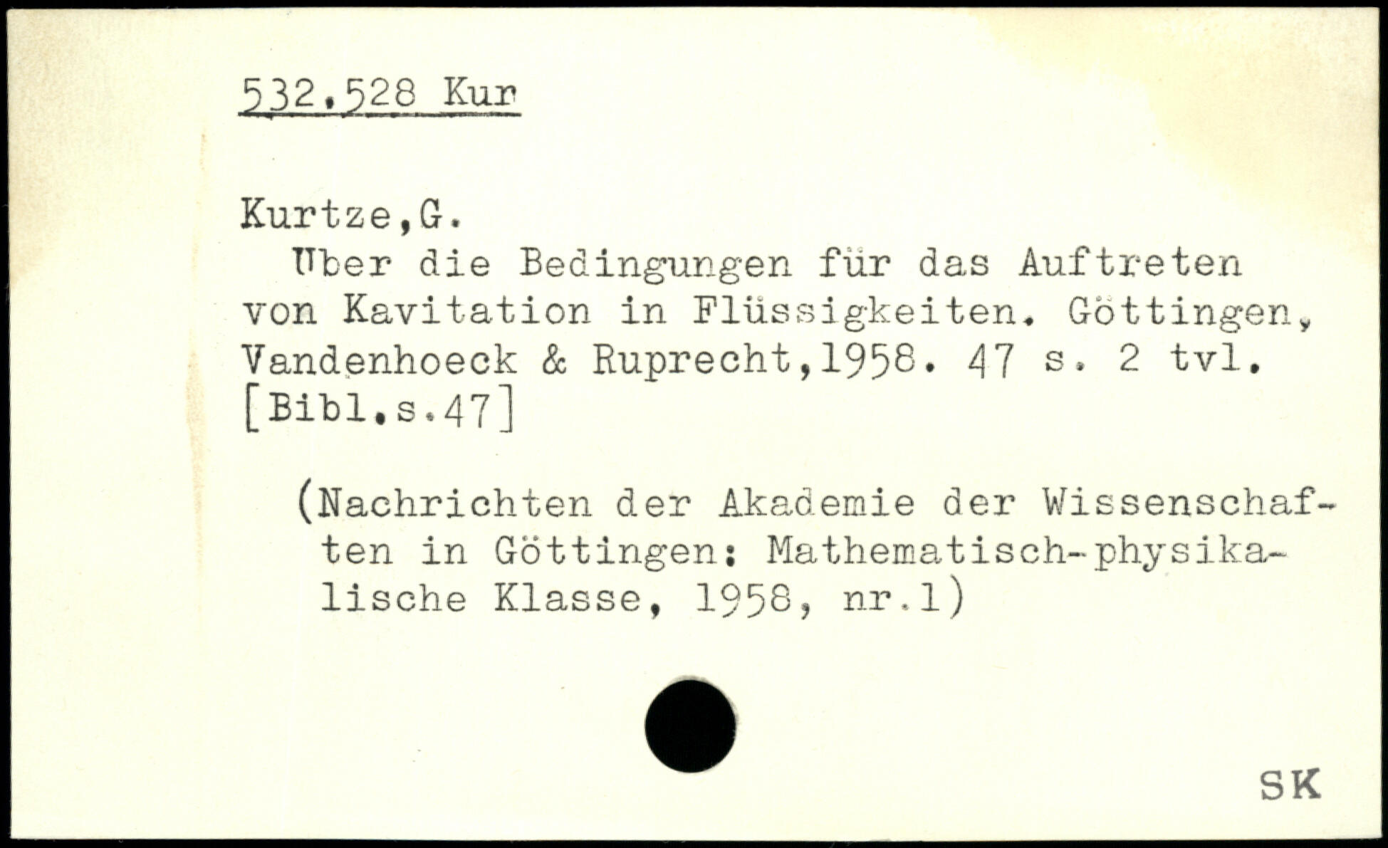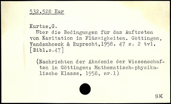 Uber die Bedingungen für das Auftreten von Kavitation in Flüssigkeiten. Göttingeny Vandenhoeck & Ruprecht,1958