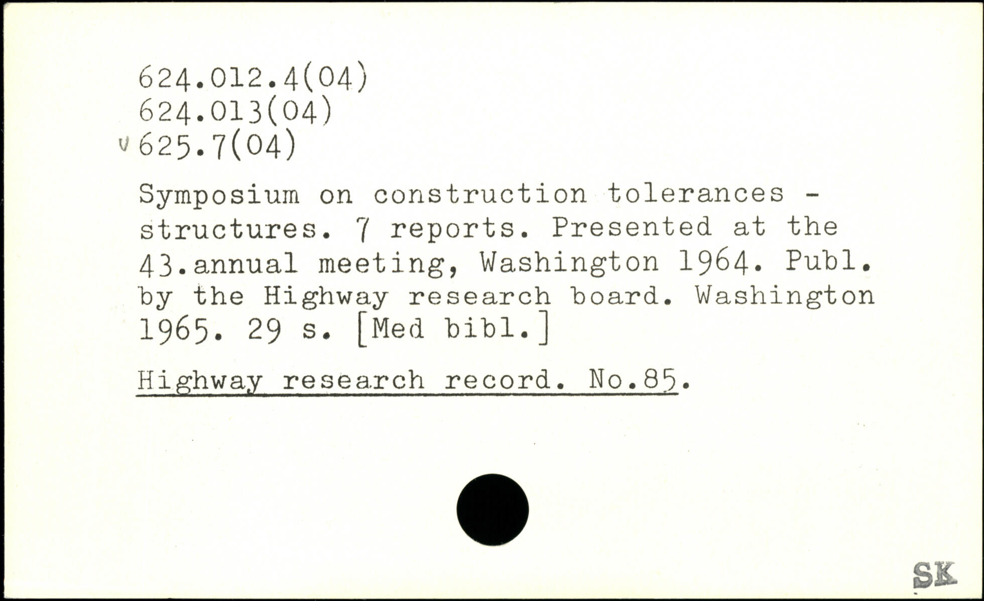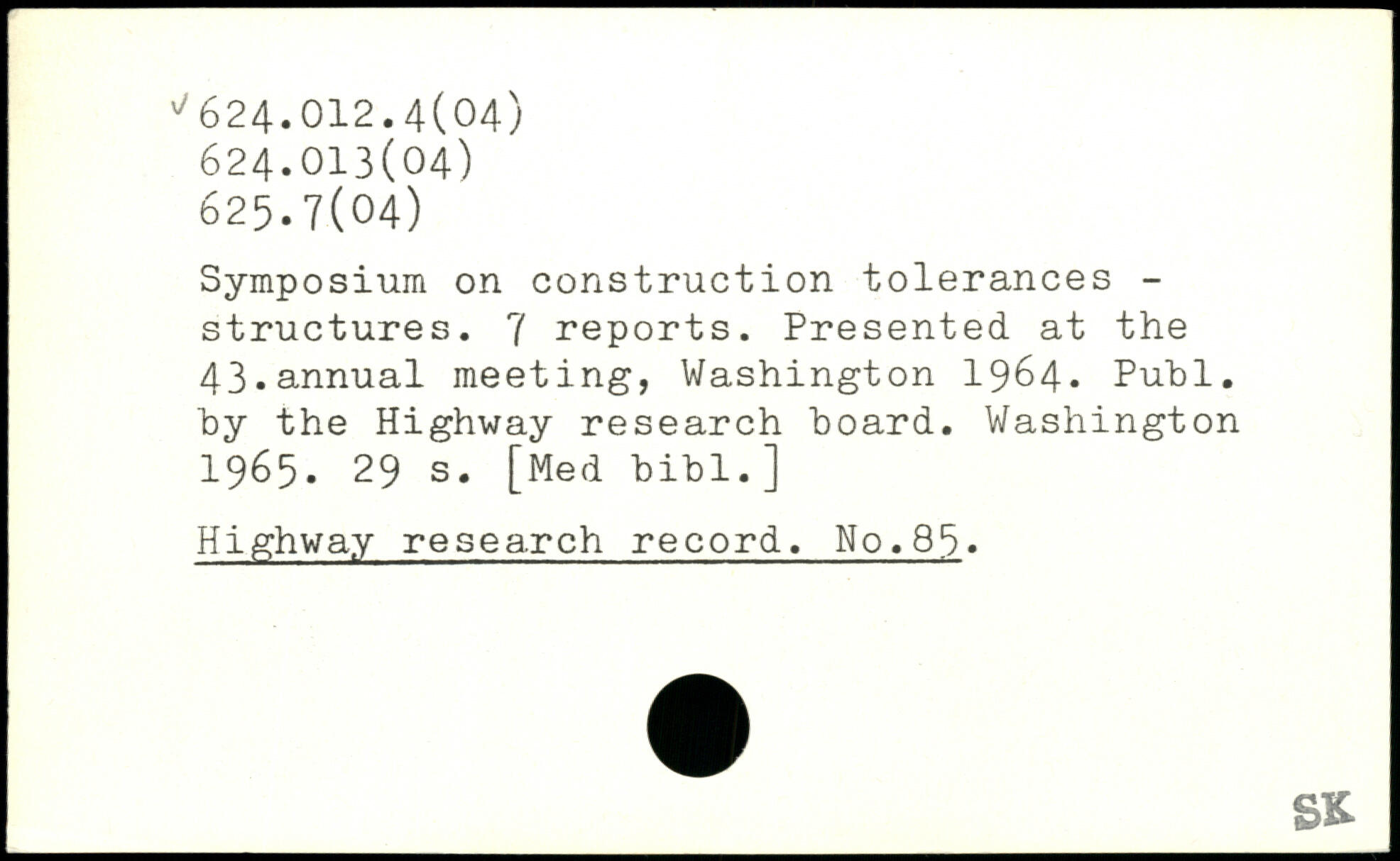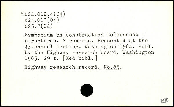 Symposium on construction tolerances -structures. 7 reports. Presented at the 43.annual meeting