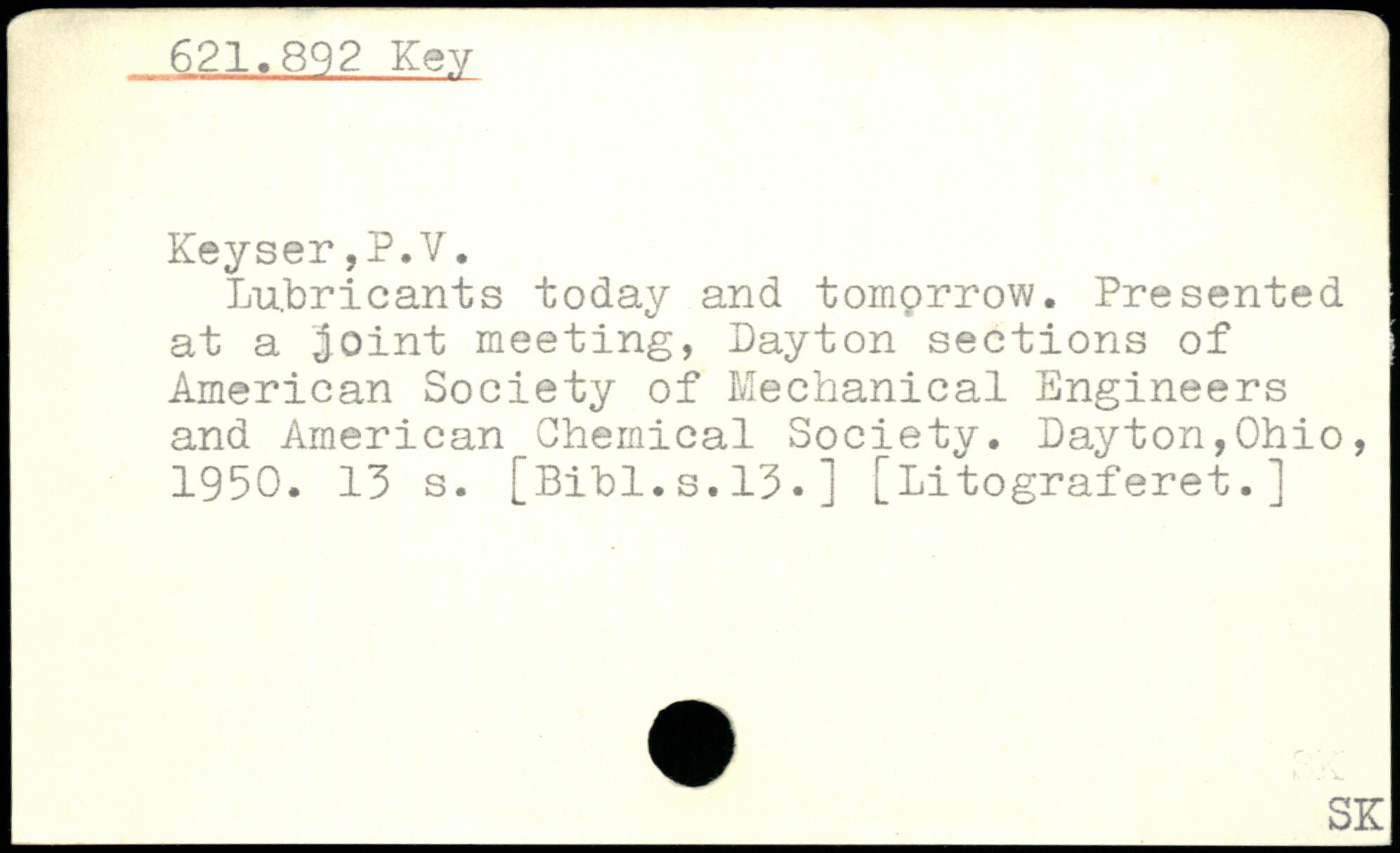 Lubricants today and tomorrow. Presented at a ^Oint meeting, Dayton sections of American Society of Mechanical Engineers and American Chemical Society.