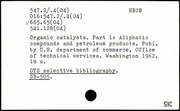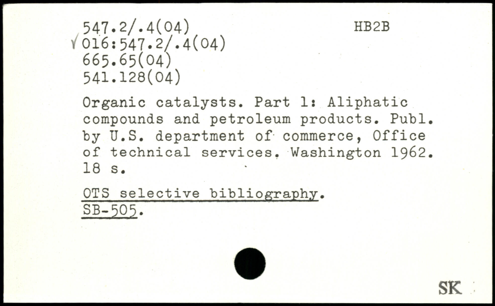 Organic catalysts. Part 1: Aliphatic compounds and petroleum products.