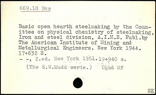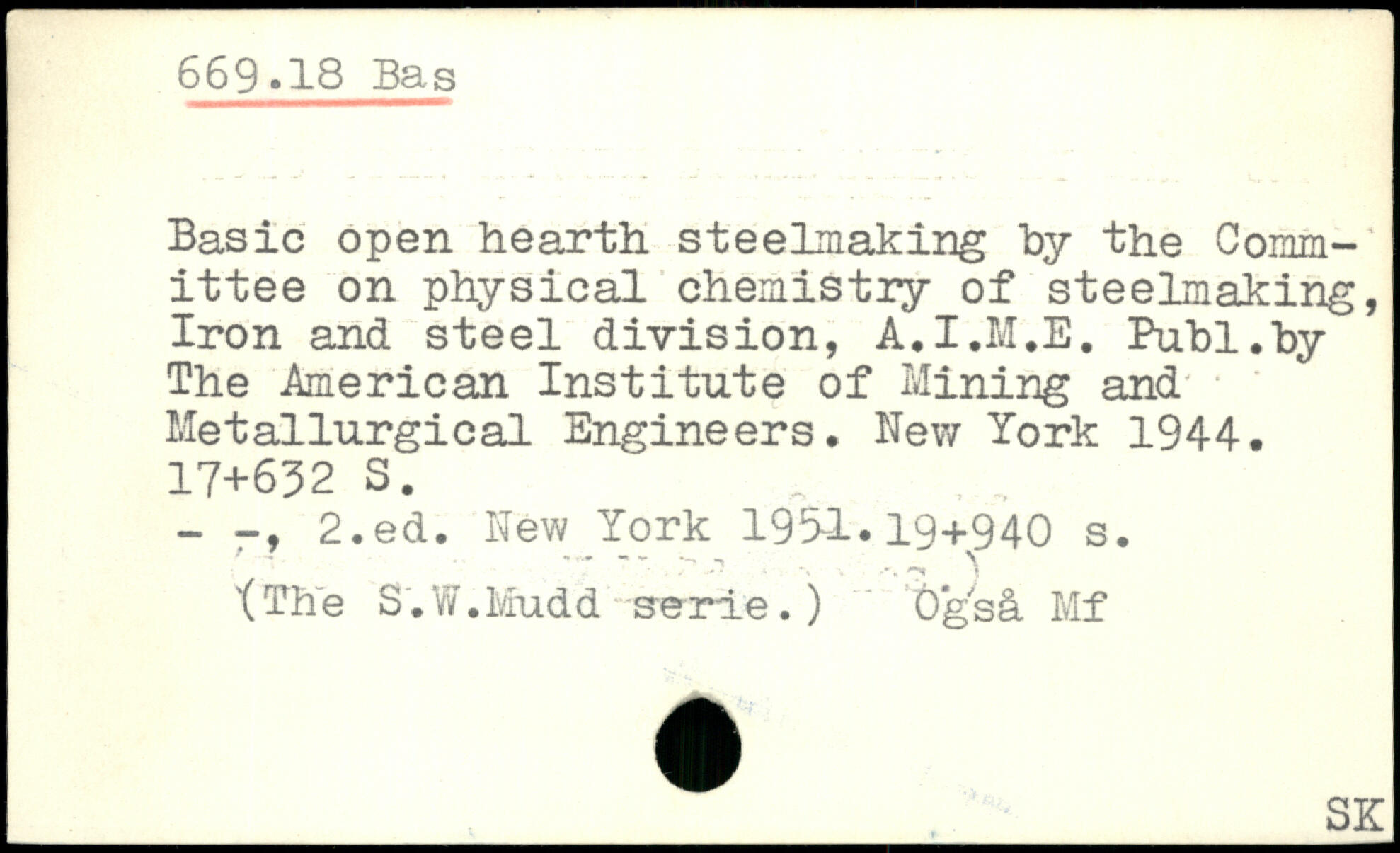 Basic open hearth steelmaking by the Comm-' ittee on physical chemistry of steelmaking, Iron and steel division, A.I.M.E.