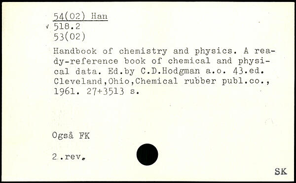 Handbook of chemistry and physics. A ready-reference hook of chemical and physical data. Ed.hy C.D.Hodgman a.o.