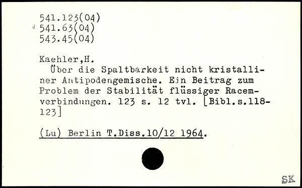 über die Spaltbarkeit nicht kristalliner Antipodengemische. E.in Beitrag zum Problem der Stabilität flüssiger Racem-verbindungen.