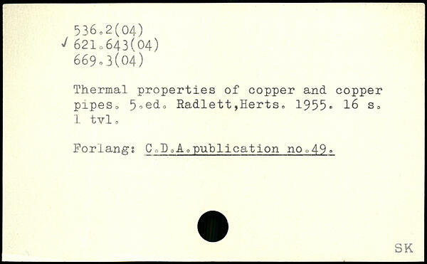 Thermal properties of copper and copper pipeSo 5'>ed.. Radlett,Herts. 1955