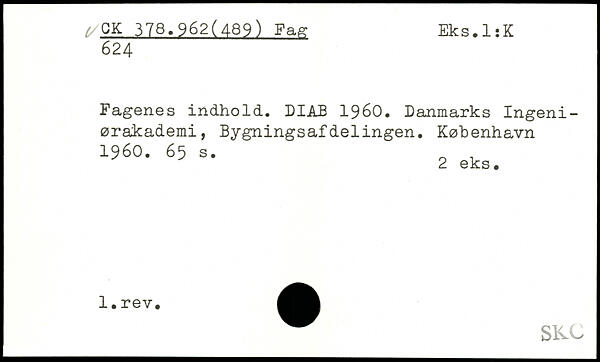Fagenes indhold. DIAE 1960. Danmarks Ingeniørakademi, Bygningsafdelingen.