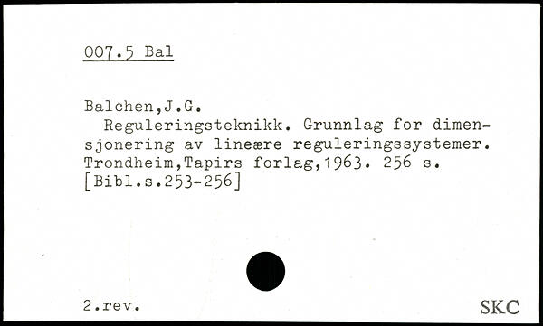 Reguleringsteknikk. Grunnlag for dimensionering av lineære reguleringssystemer. Trondheim,Tapirs forlag,19^3.