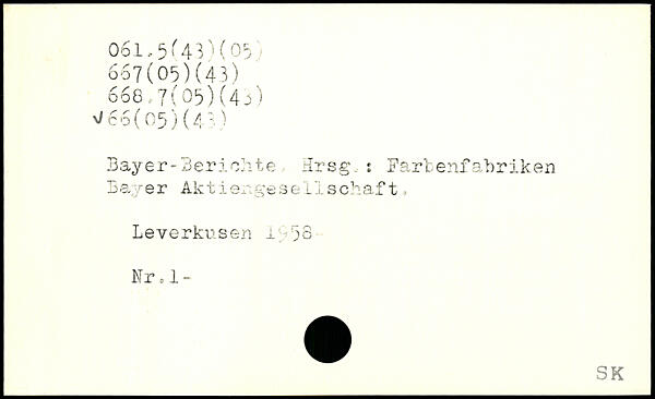 Bayer-Berichte Hrsg : Fartenfabriken Bayer Aktiengesellschaft Leverkusen i 38 Nr. 1 -