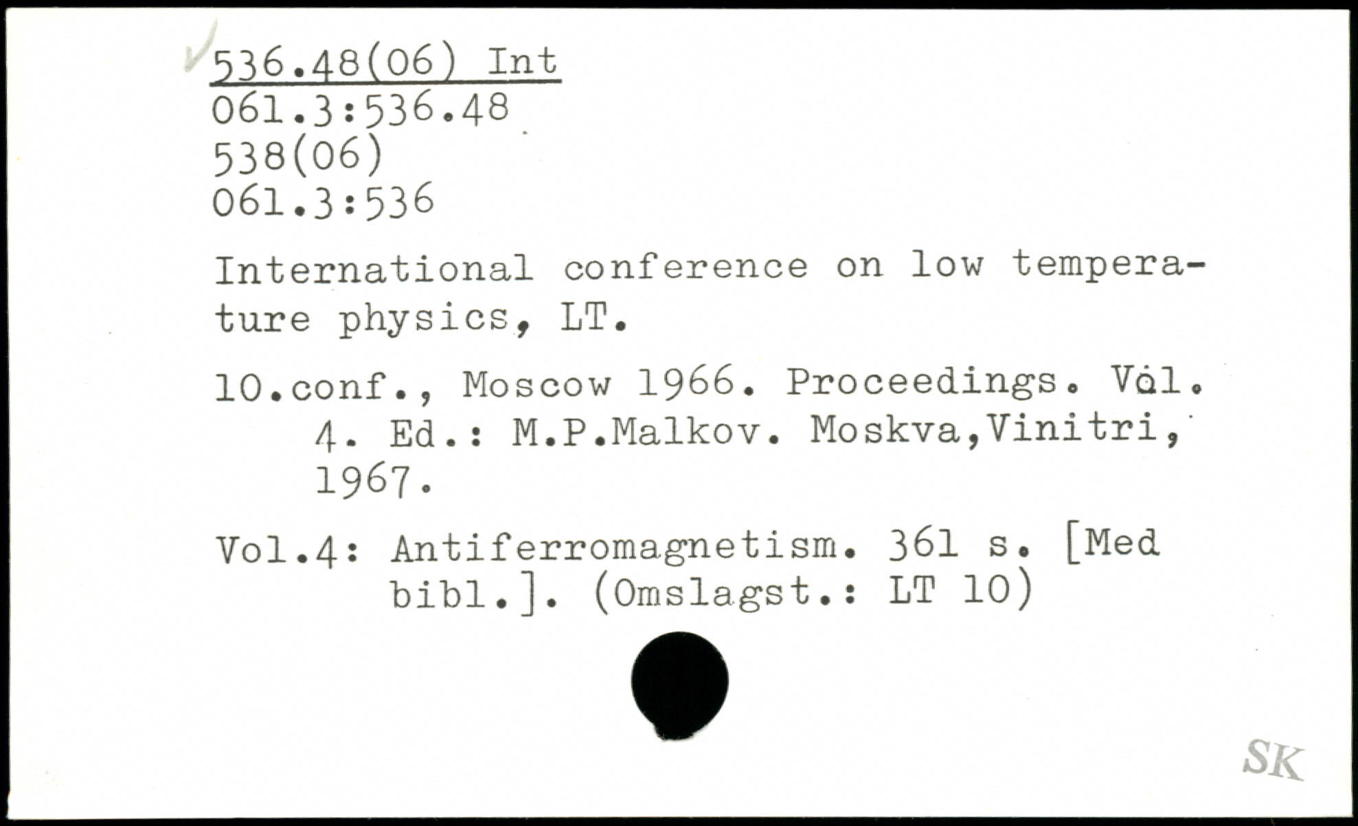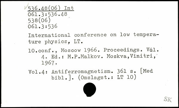 International conference on low temperature physics, LT. lO.conf., Moscow 1966. Proceedings. VqI. 4. Ed.: M.P.Maikov.
