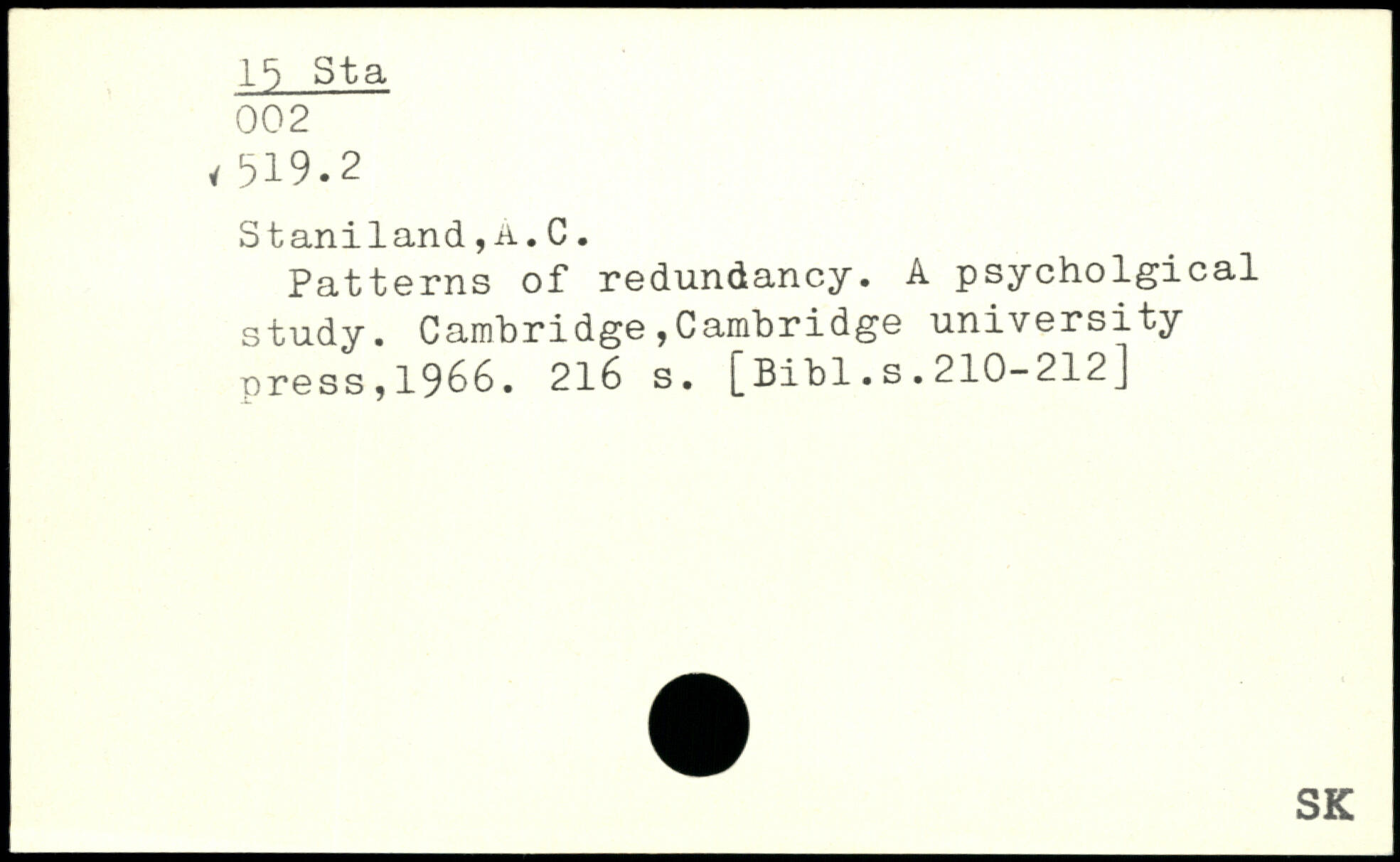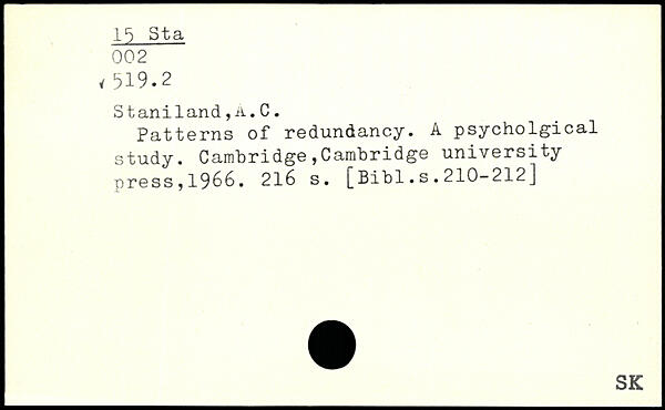 S taniland, A. C. Patterns of redundancy. A psycholgical study.
