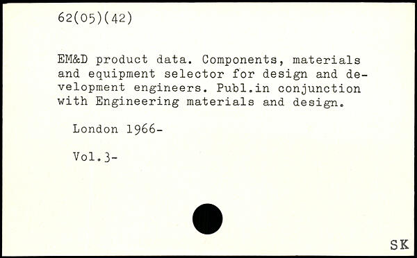EM&L product data. Components, materials and equipment selector for design and development engineers. Publ.in conjunction with Engineering materials and design.