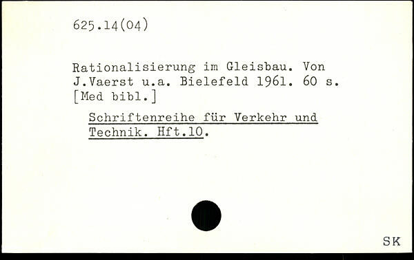 Rationalisierung im Gleisbau. Von J.Vaerst u.a. Bielefeld 1961.