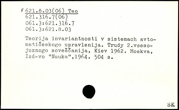 Teorija invariantnos ti v sistemach avto-maticeskogo upravlenija. Trudy 2.vseso-juznogo sovescanija, Kiev 1962. Moskva, Izd-vo "Nauka",1964.