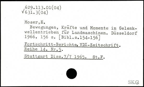 Bewegungen, Kräfte und Momente in Gelenkwellentrieben für Landmaschinen. Düsseldorf 1966.