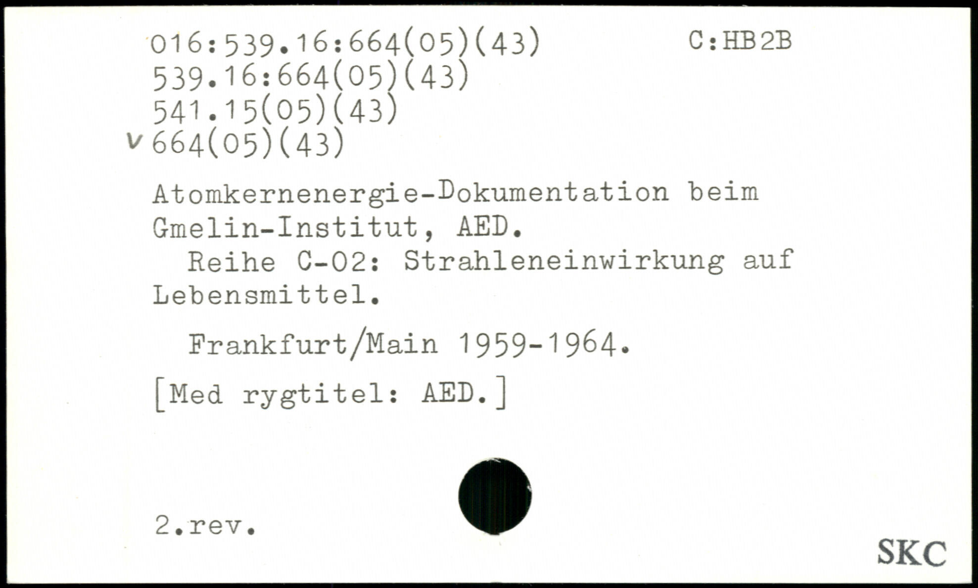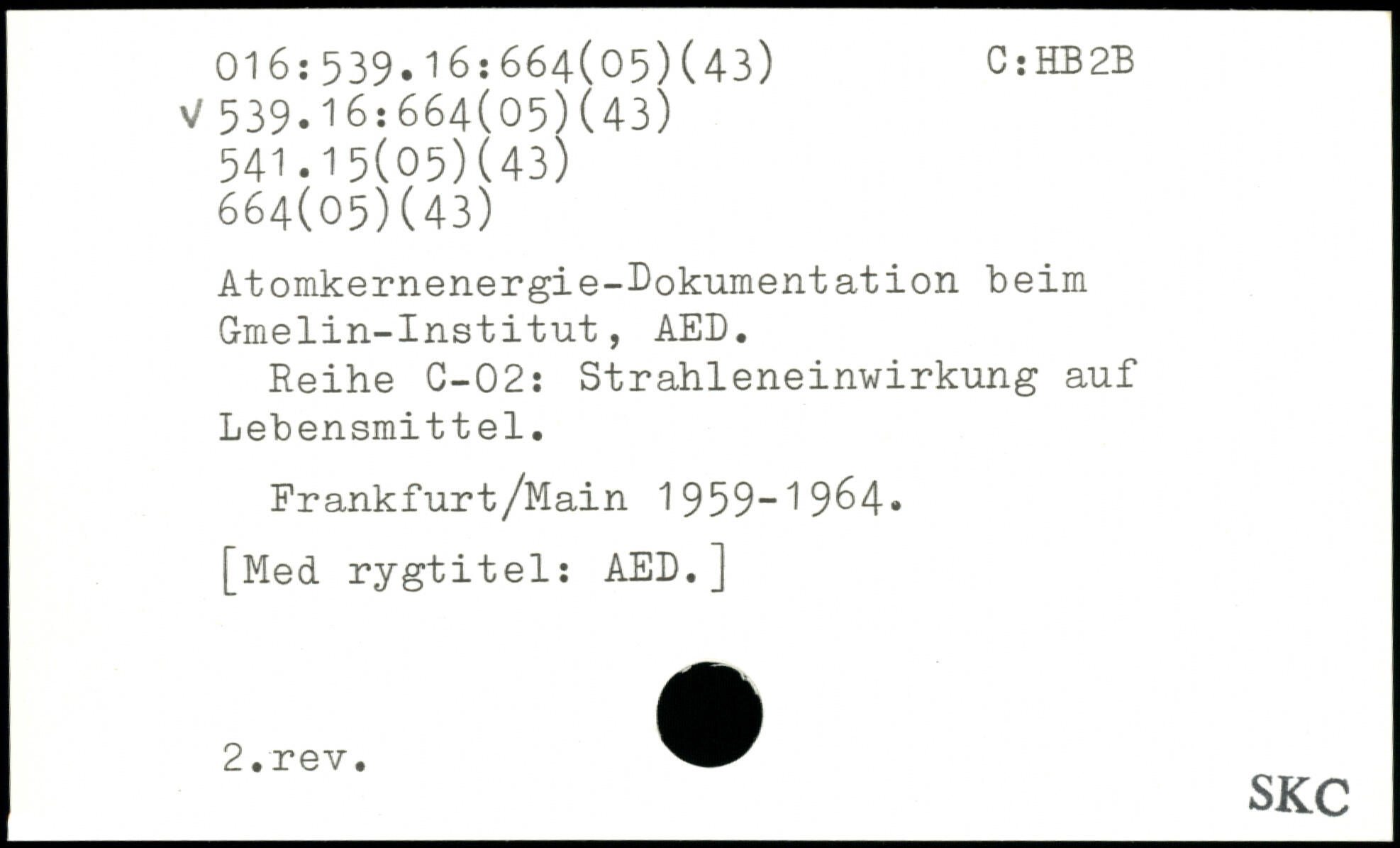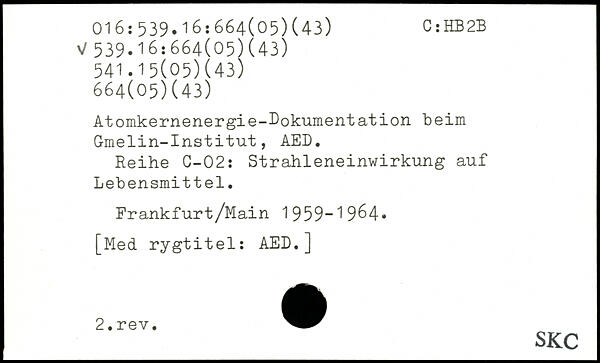 Atomkernenergie-Dokumentation beim Gmelin-Institut, AED. Reihe C-02: Strahleneinwirkung auf Lebensmittel. Frankfurt/Main 1959-1964.