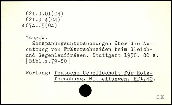 Zerspanungsuntersuchungen über die Abnutzung von Fräserschneiden beim Gleich-und Gegenlauffrasen.