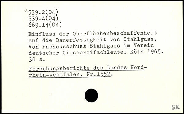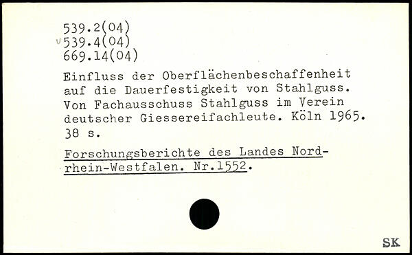 Einfluss der Oberflächenbeschaffenheit auf die Dauerfestigkeit von Stahlguss. Von Fachausschuss Stahlguss im Verein deutscher Giessereifachleute.