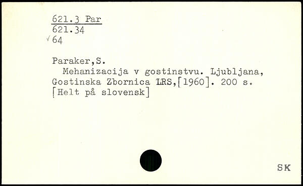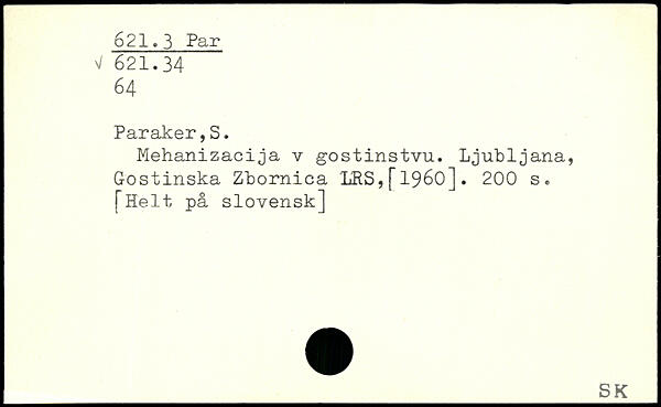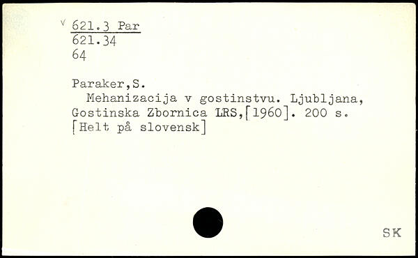 Mehanizacija v gostinstvu. Ljubljana, Gostinska Zbornica 1RS,[1960].