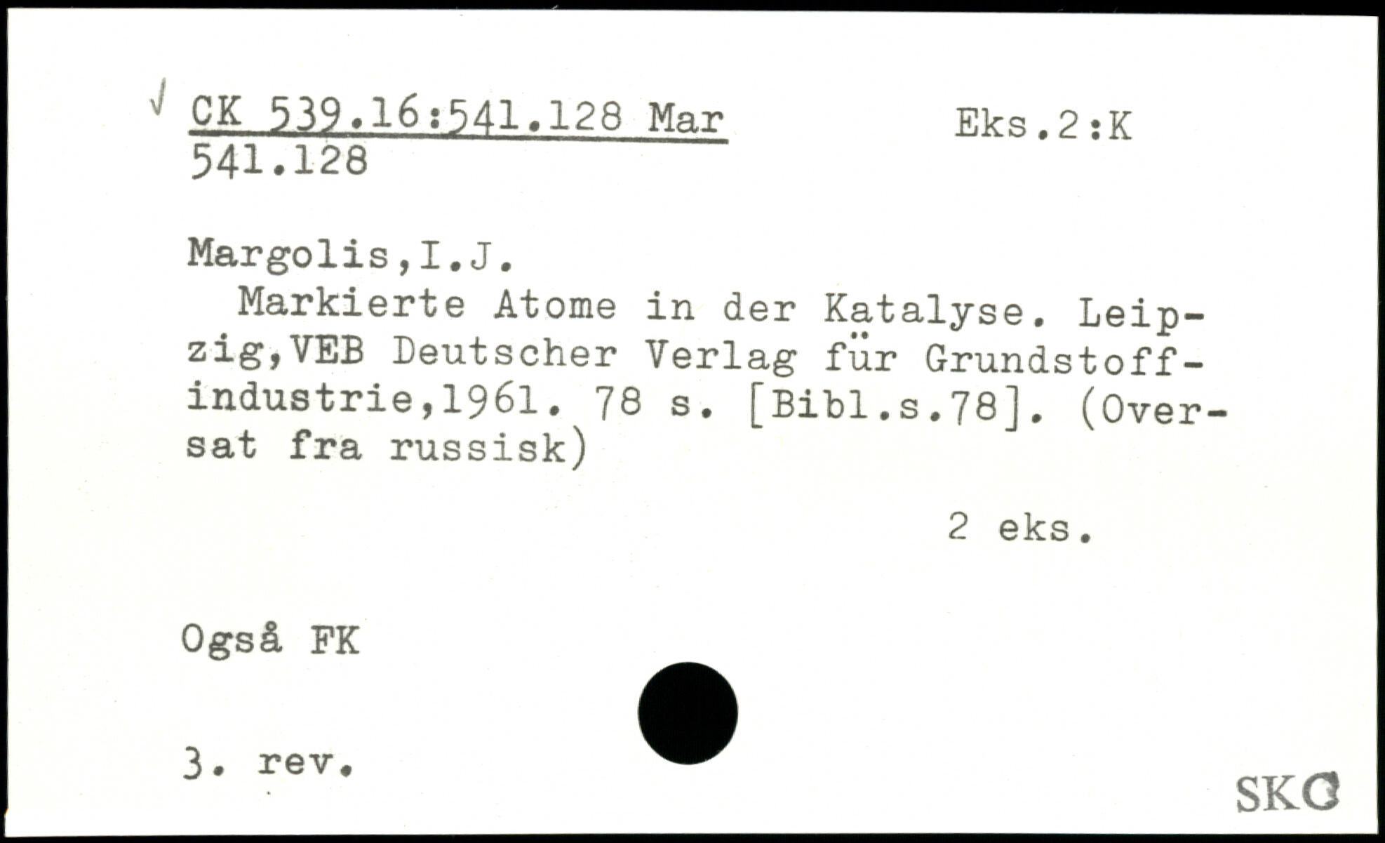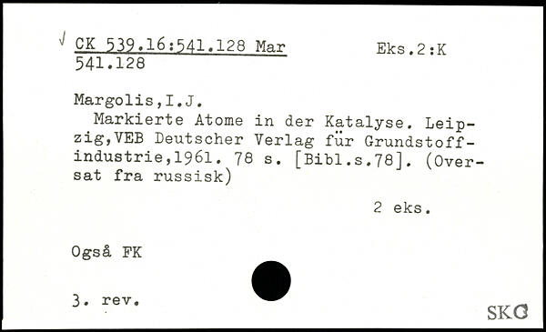 Markierte Atome in der Katalyse. Leipzig,VEB Deutscher Verlag für Grundstoffindustrie ,1961.