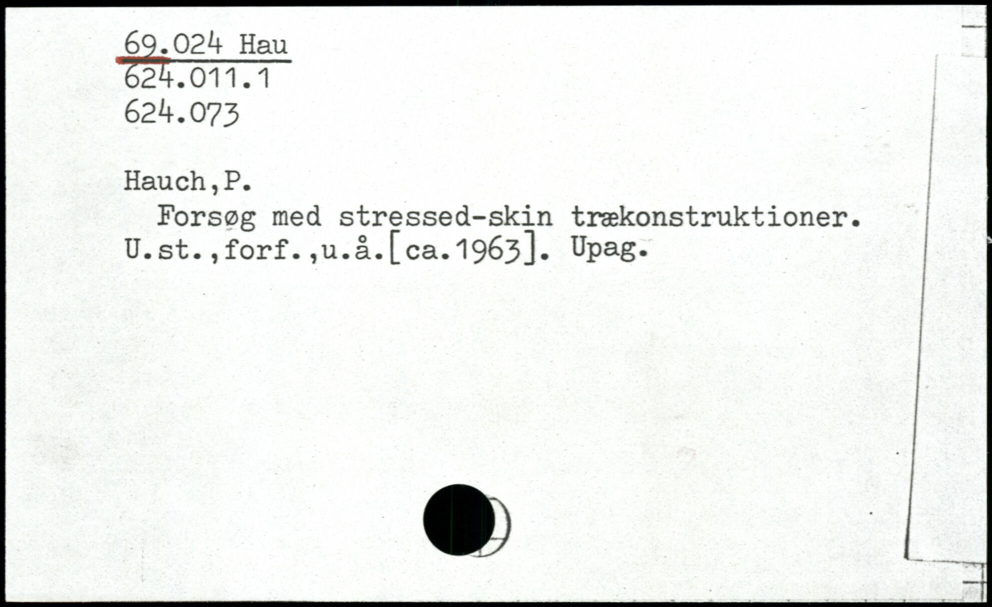 Forsøg med stressed-skin trækonstruktioner. U.st.,forf.,u.å.[ca.1963], Upag.