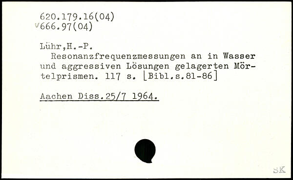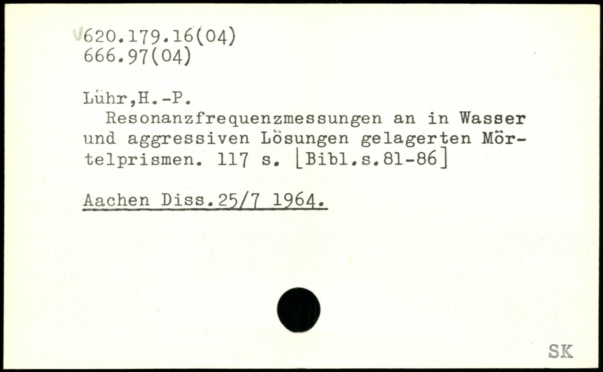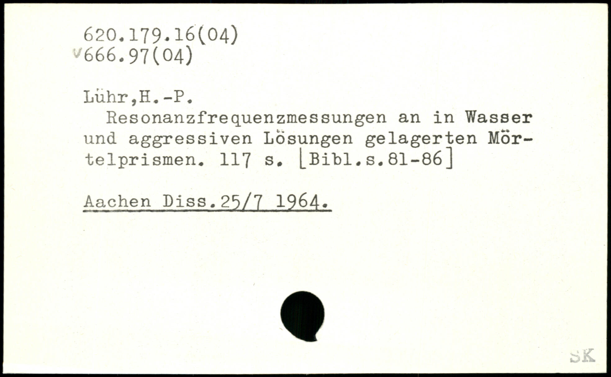 Resonanzfrequenzmessungen an in Wasser und aggressiven Losungen gelagerten Mörtelprismen.