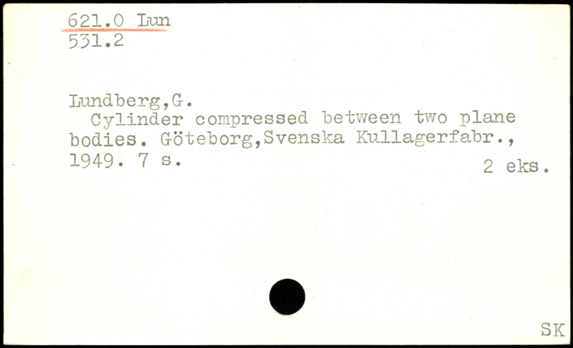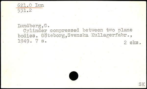 Cylinder compressed between two plane bodies. Göteborg,Svenska 'Kullagerfabr., 1949.