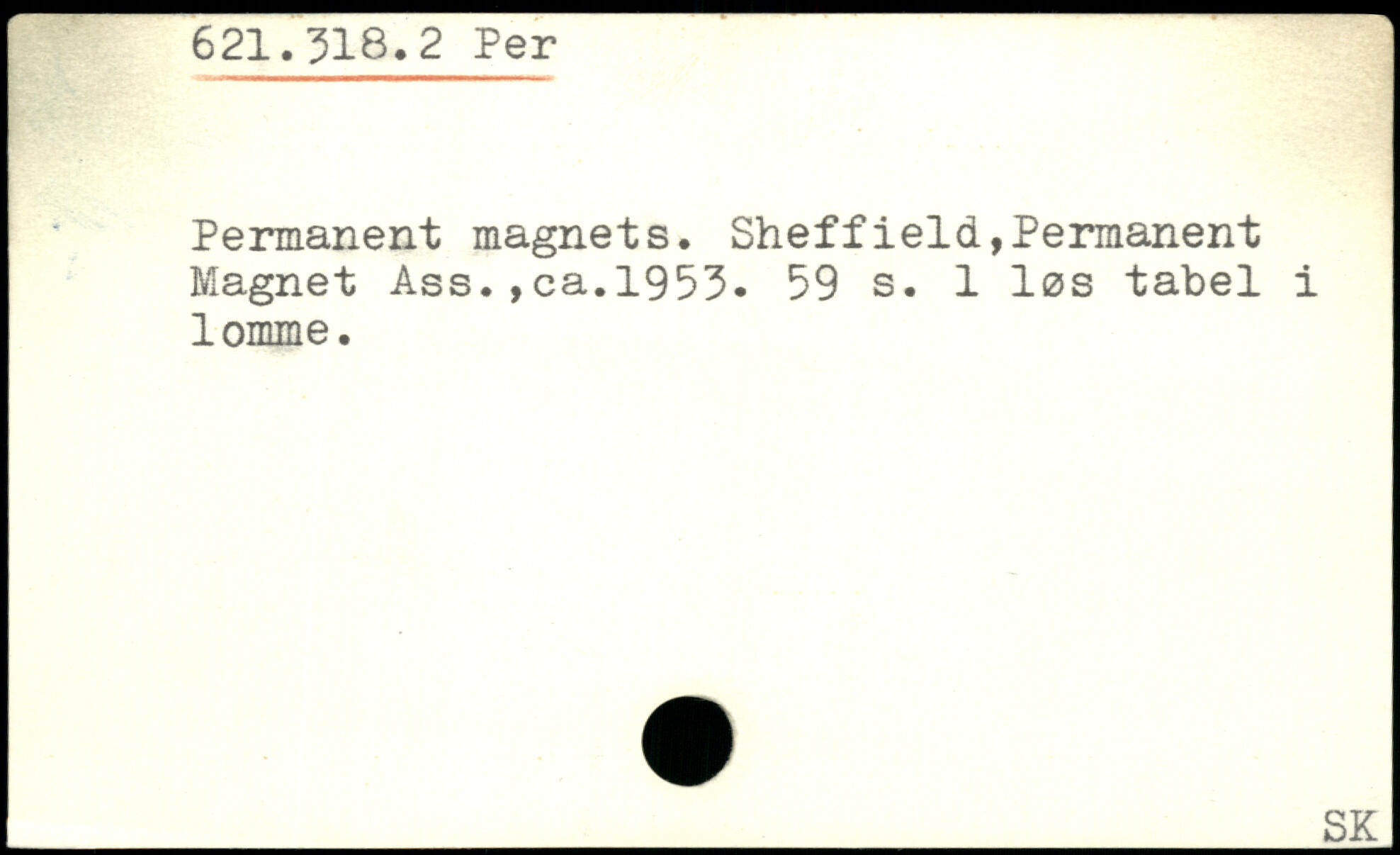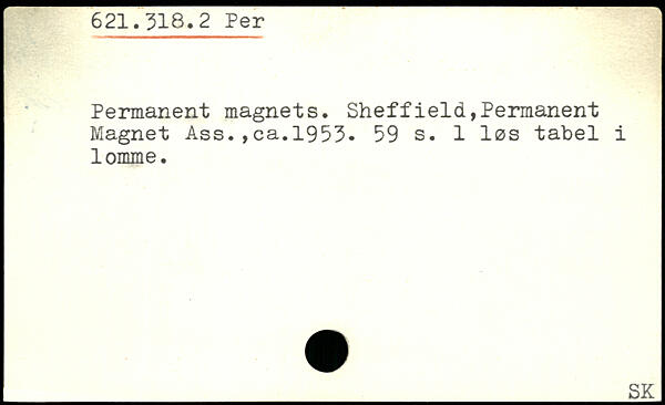 Permanent magnets. Sheffield,Permanent Magnet Ass.,ca.1953.