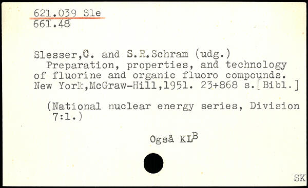 Preparation, properties, and technology of fluorine and organic fluoro compounds.