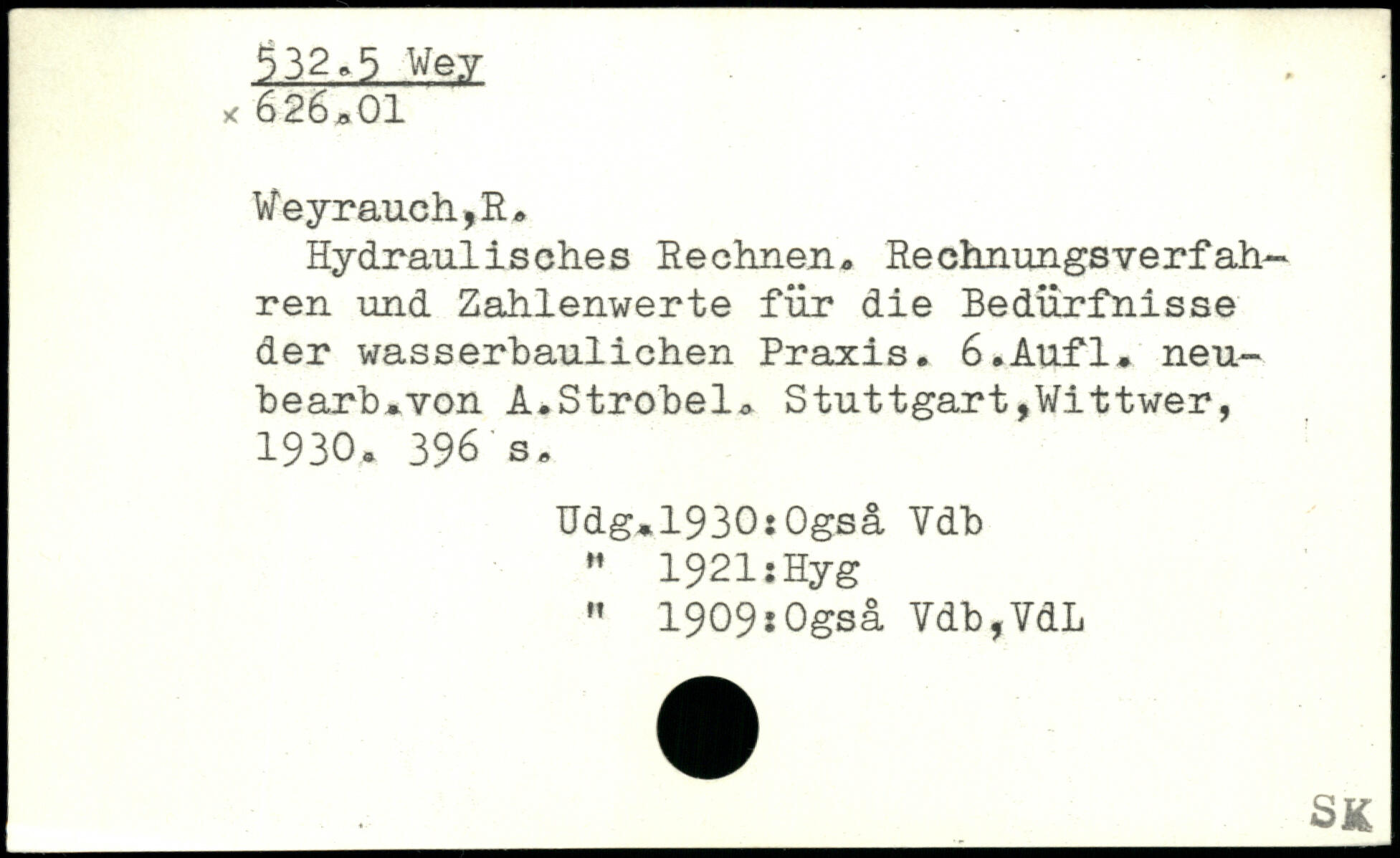 Hydraulisches Rechnen. Rechnungsverfahren und Zahlenwerte für die Bedürfnisse der wasserbaulichen Praxis. ö.Aufl. neu-bearb.von A.Strobel.