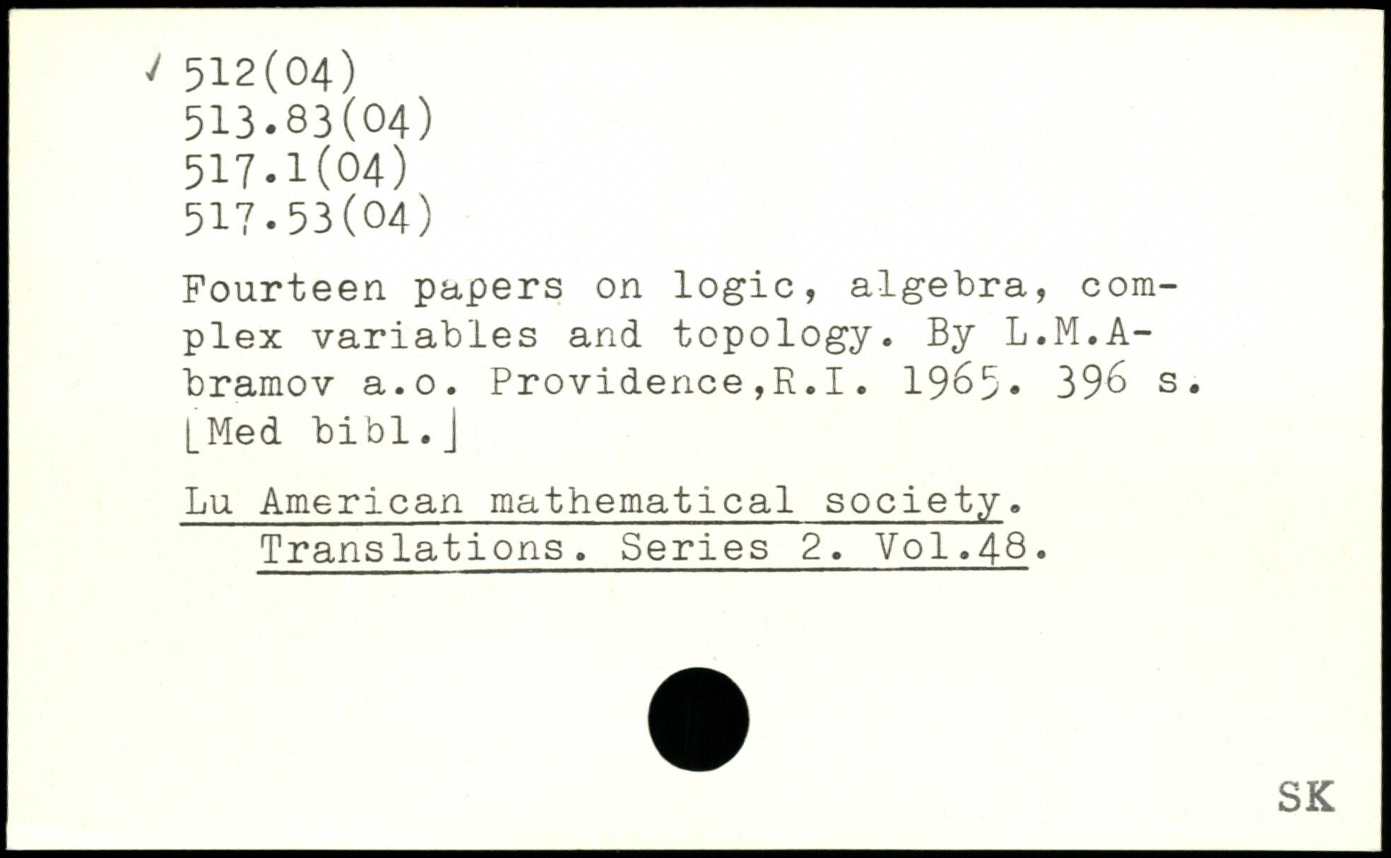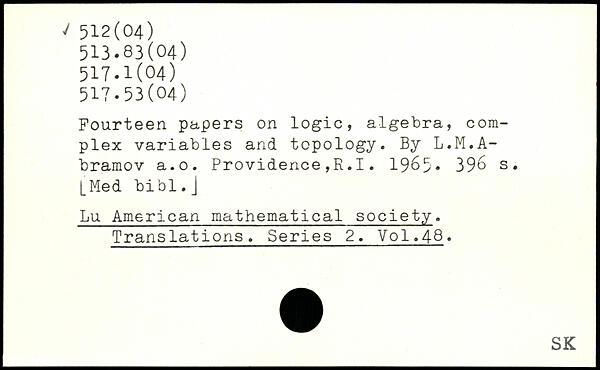 Fourteen papers on logic, algebra, complex variables and topology. By L.M.A-bramov a.o. Providence,R.I. 1965.