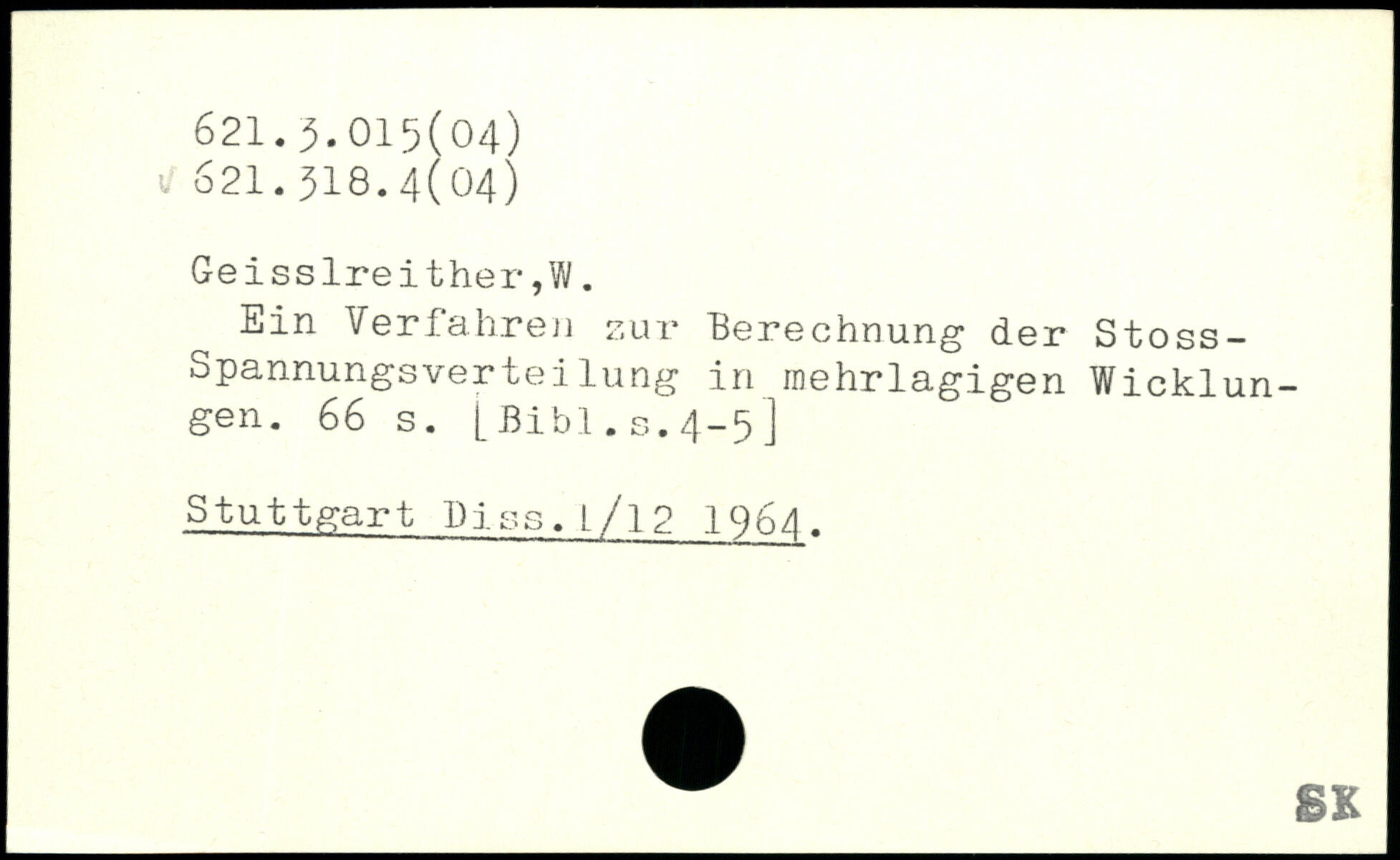 Ein Verfahre]} zur Berechnung der Stoss-Spannungsverteilung in mehrlagigen Wicklungen.