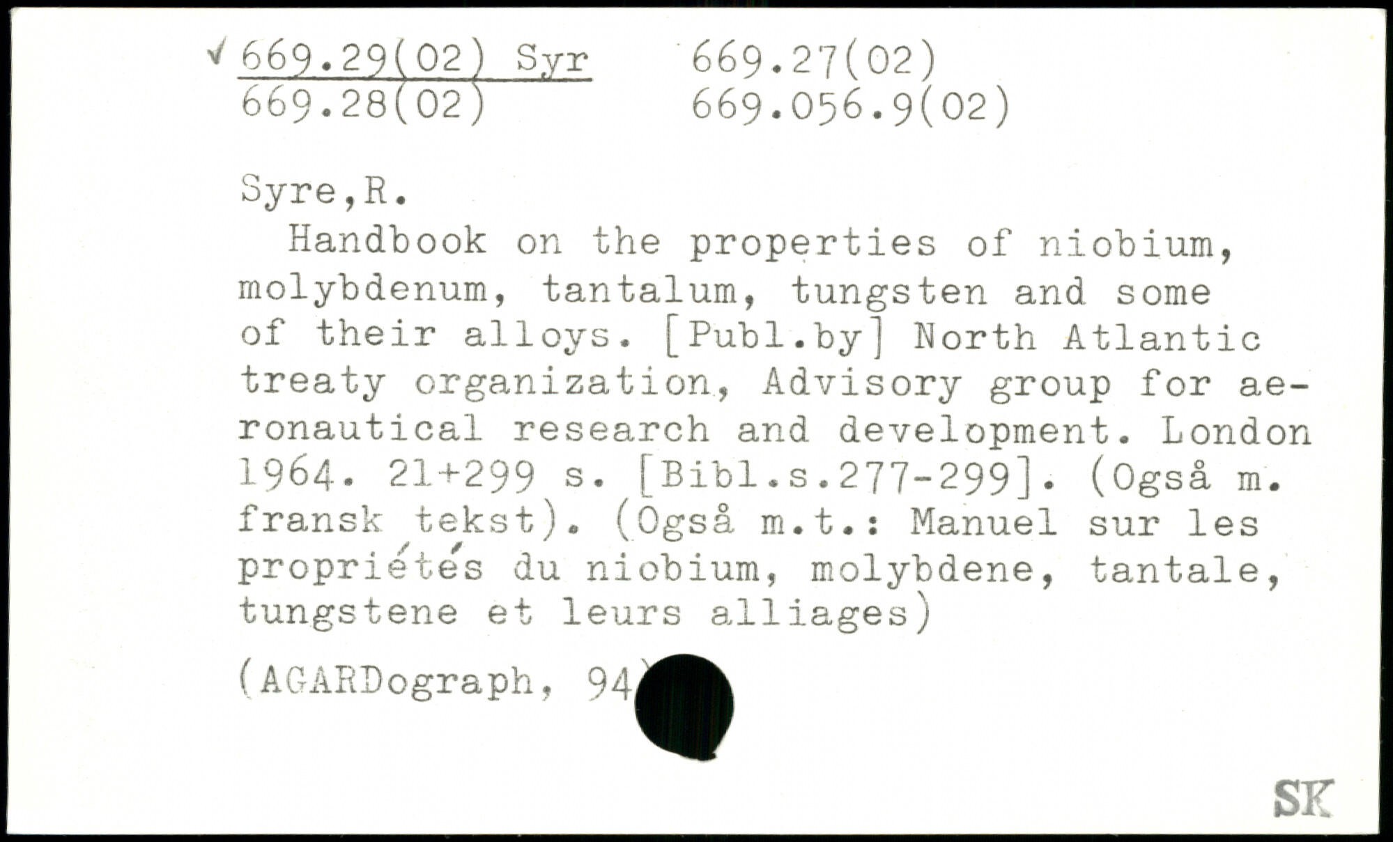 UDK: 669.29(02) Syr, 669.27(02), 669.28(02), 669.056.9(02)
