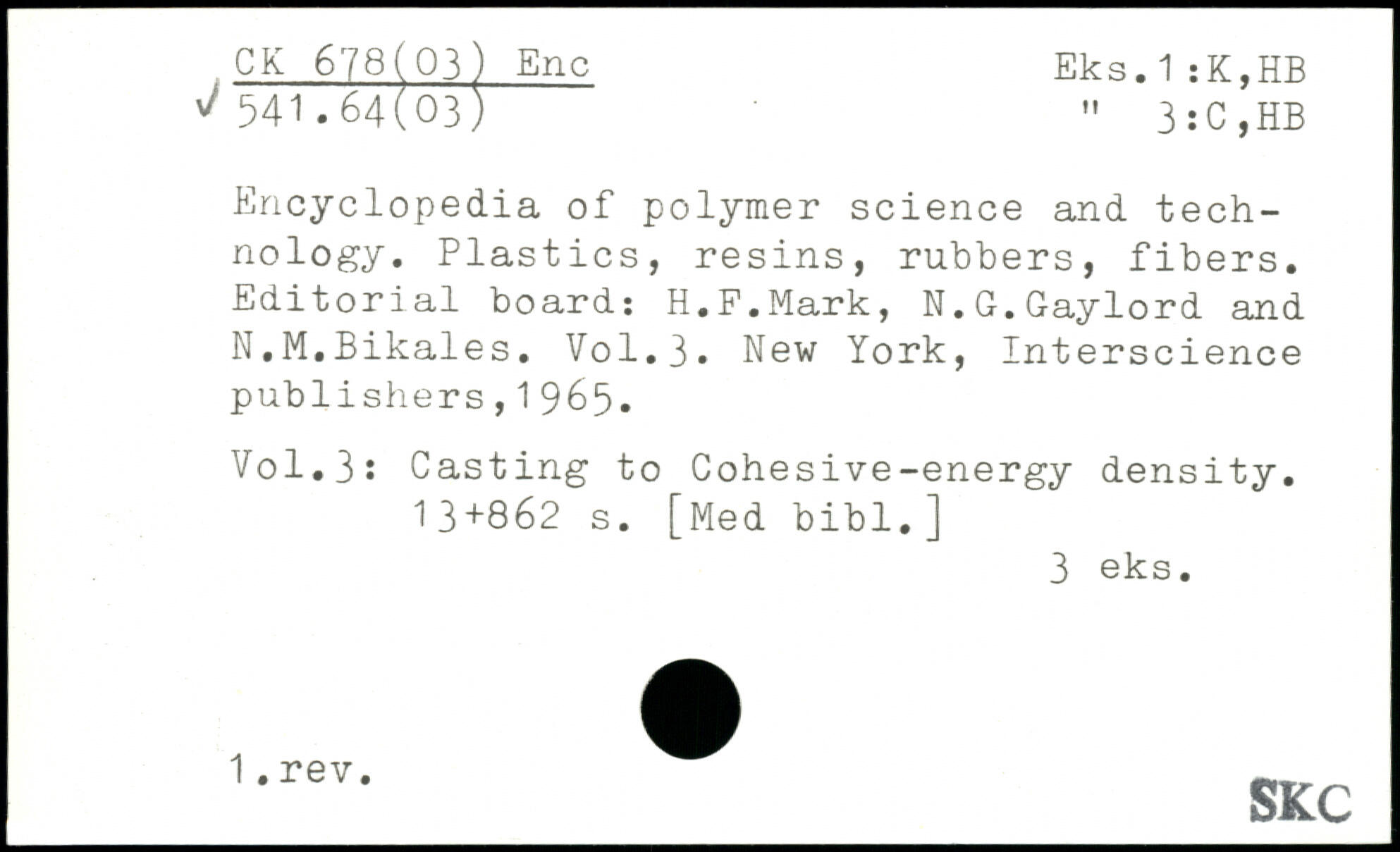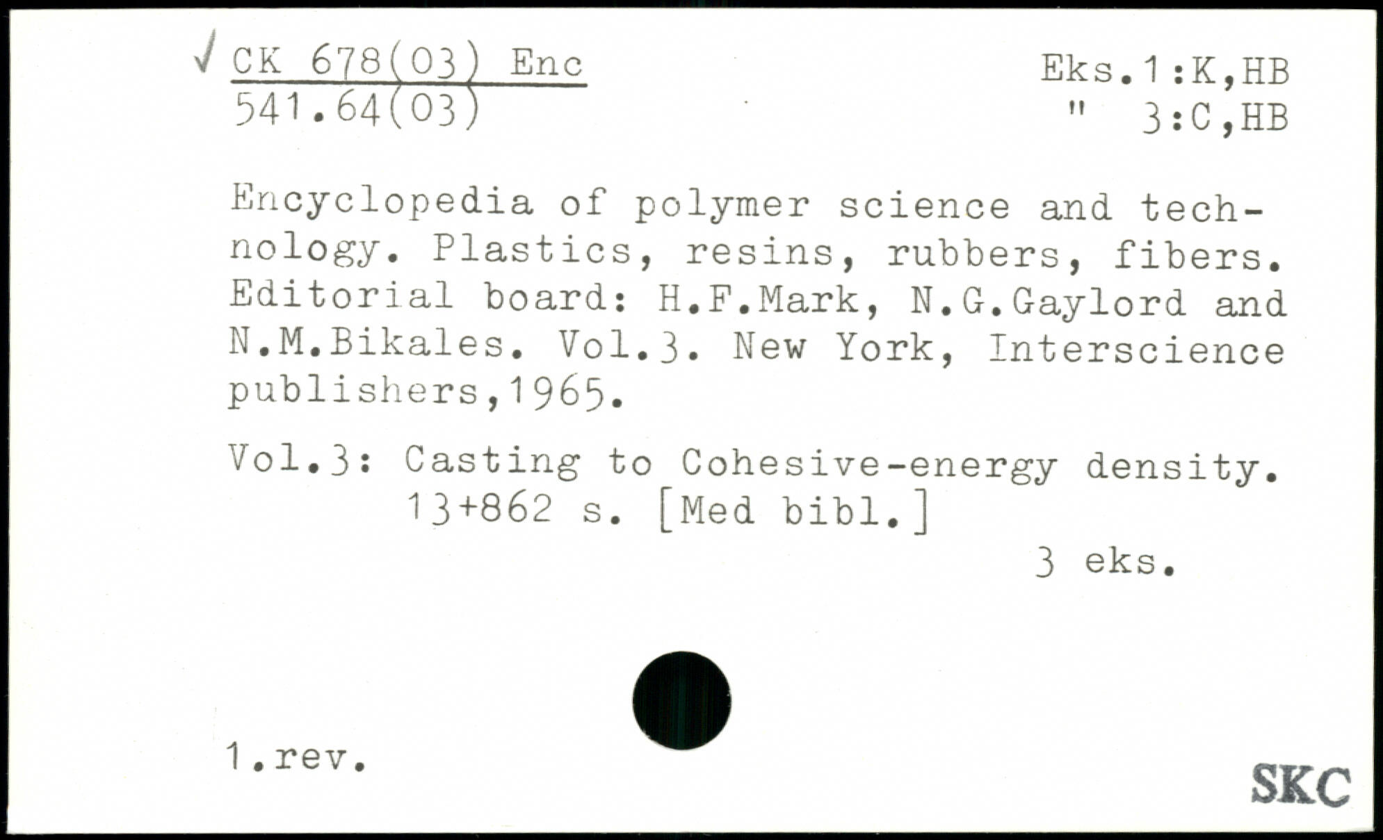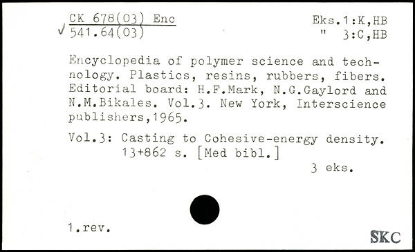 Encyclopedia of polymer science and technology. Plastics, resins, rubbers, fibers. Editorial board: H.F.Mark, N.G.Gaylord and N.M.Bikales.