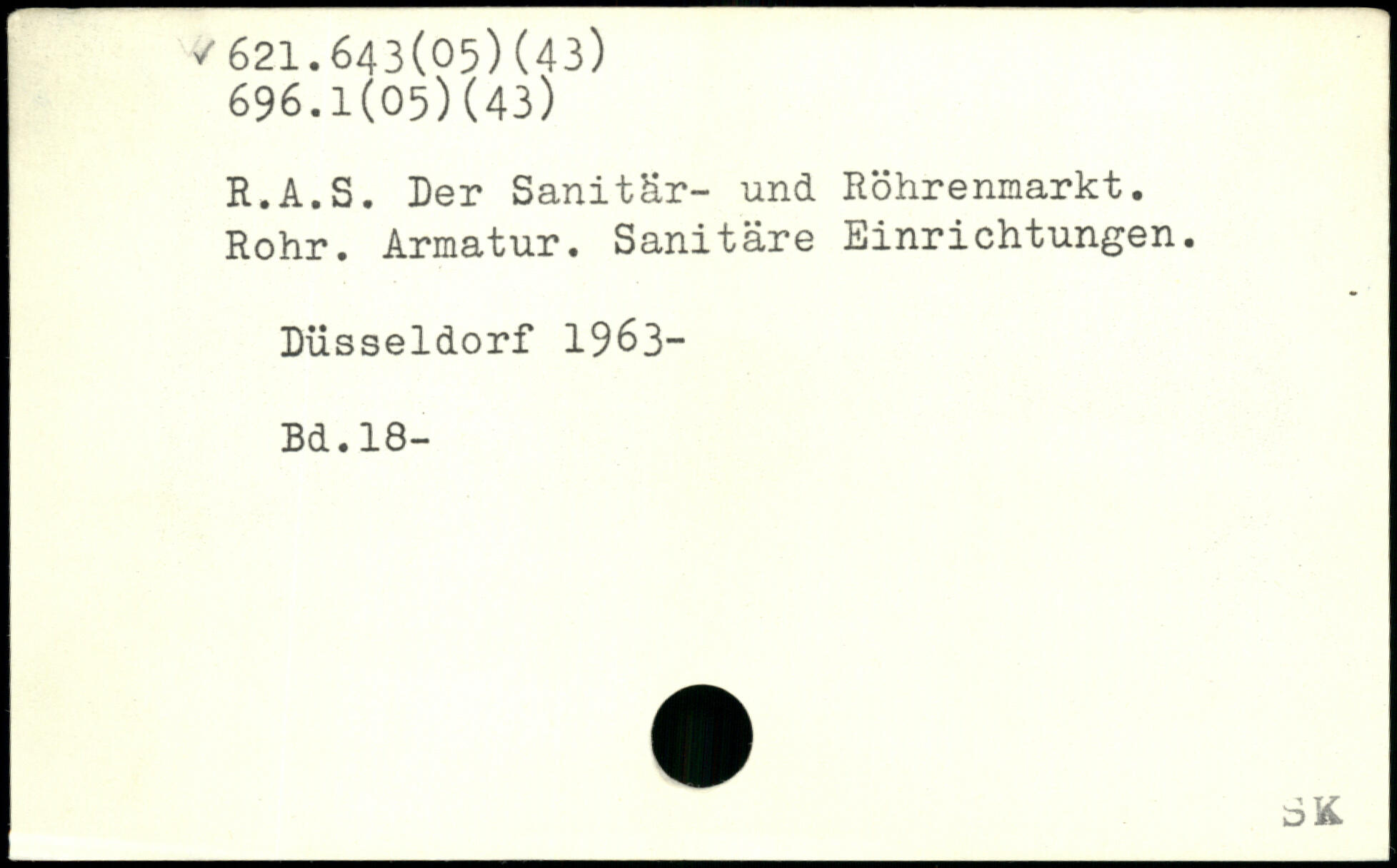 R.A.S. Der Sanitär- und Höhrenmarkt. Rohr. Armatur. Sanitäre Einrichtungen. Düsseldorf 1963-