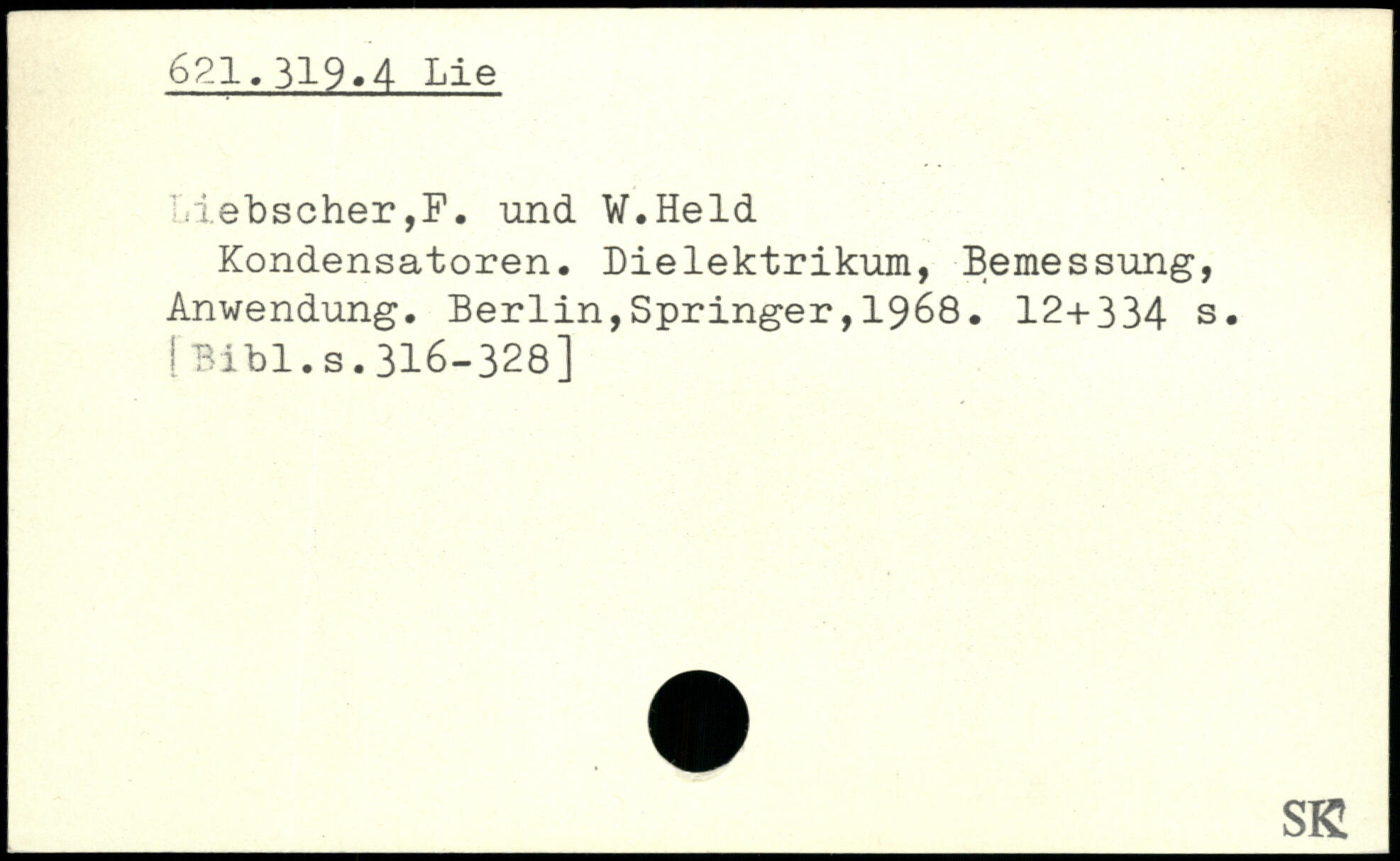 liebscher,F. und W.Held Kondensatoren. Dielektrikum, Bemessung, Anwendung.