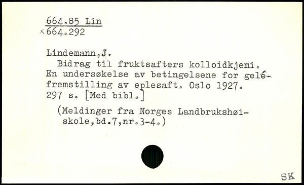 Bidrag til fruktsafters kolloidkjemic En undersøkelse av betingelsene for gelé-fremst1111ng av eplesaft, Oslo 1927