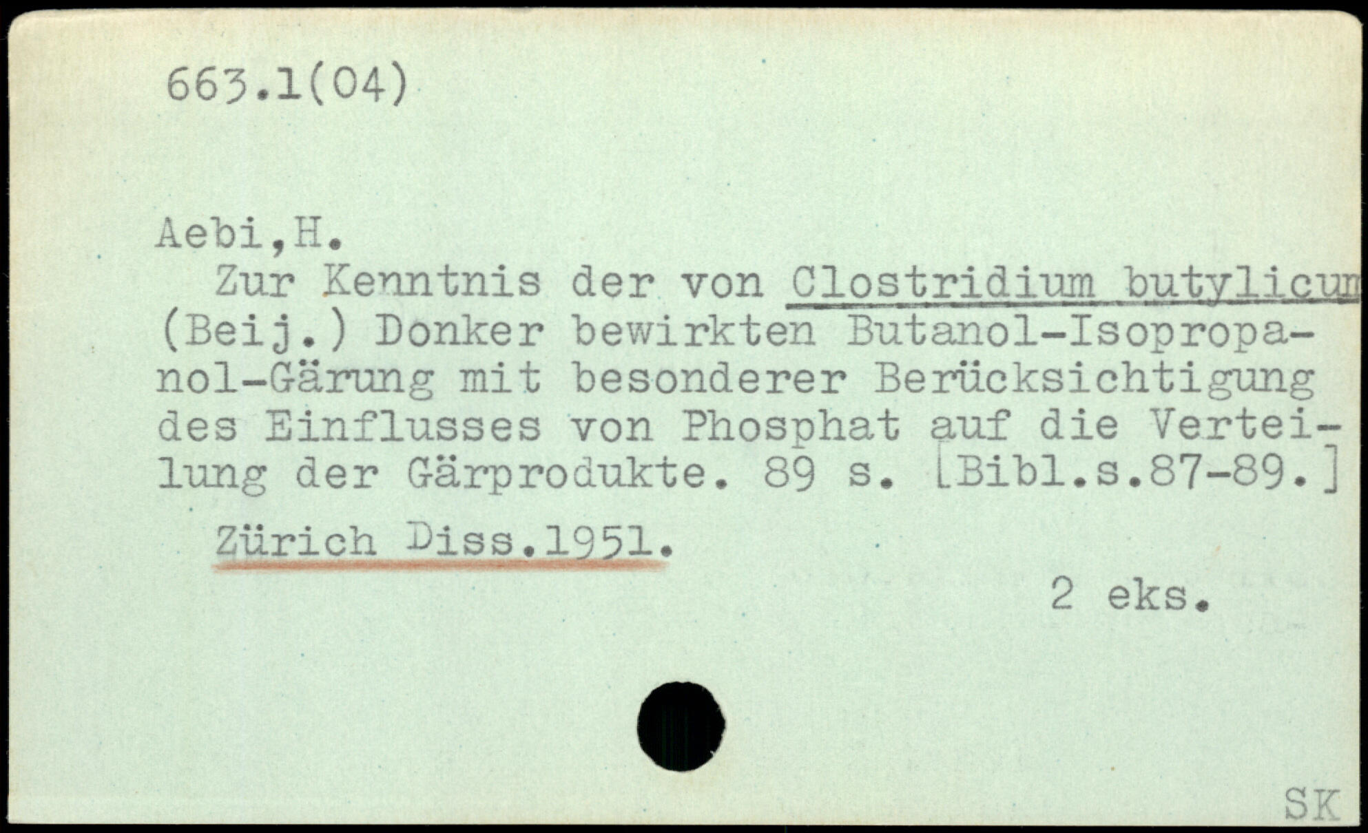 Zur Kenntnis der von Clostridium butvlicun (Beij.) Donker bewirkten Butanol-Isopropa-nol-G-ärung mit besonderer Berücksichtigung des Einflusses von Phosphat auf die Verteilung der Gärprodukte.