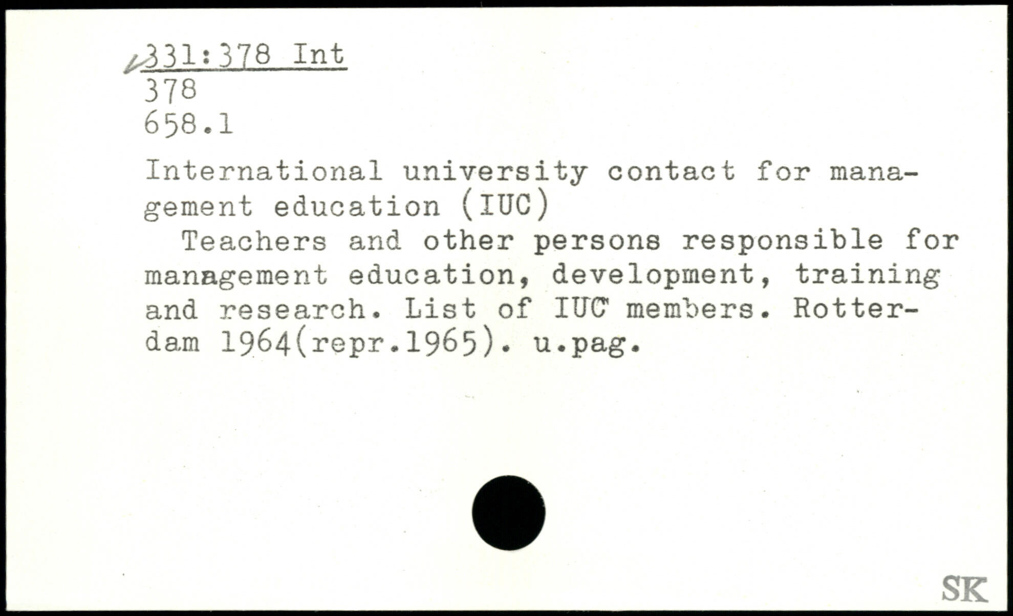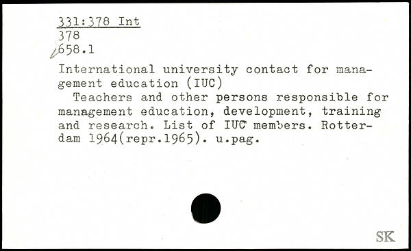 International university contact for management education (XUC) Teachers and other persons responsible for management education, development, training and research. List of ItTCT members. Rotterdam 1964(repr.1965). u.pag.